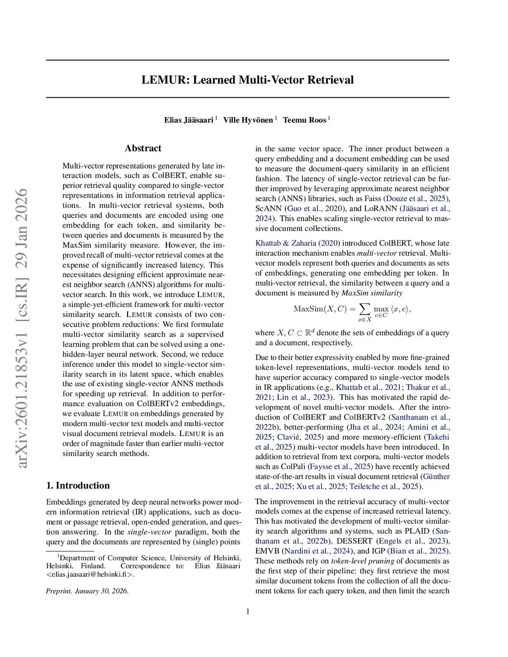 LEMUR: Learned Multi-Vector Retrieval