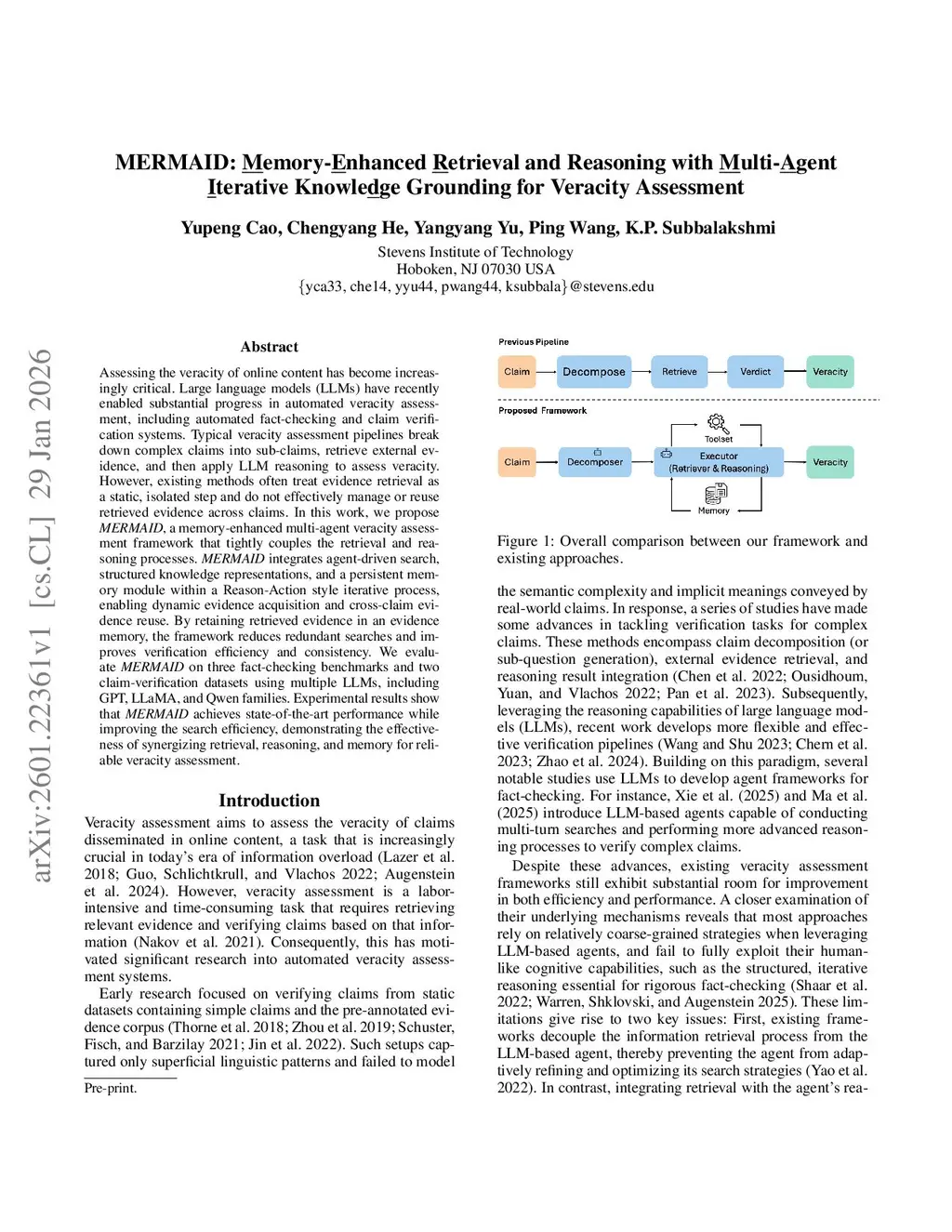 MERMAID: Memory-Enhanced Retrieval and Reasoning with Multi-Agent Iterative Knowledge Grounding for Veracity Assessment