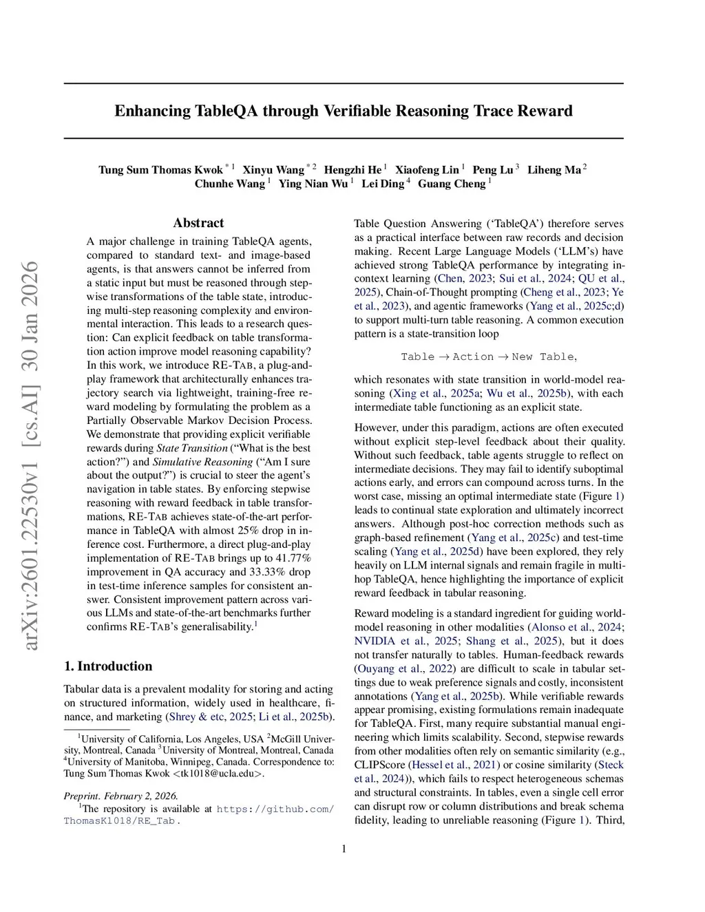 Enhancing TableQA through Verifiable Reasoning Trace Reward