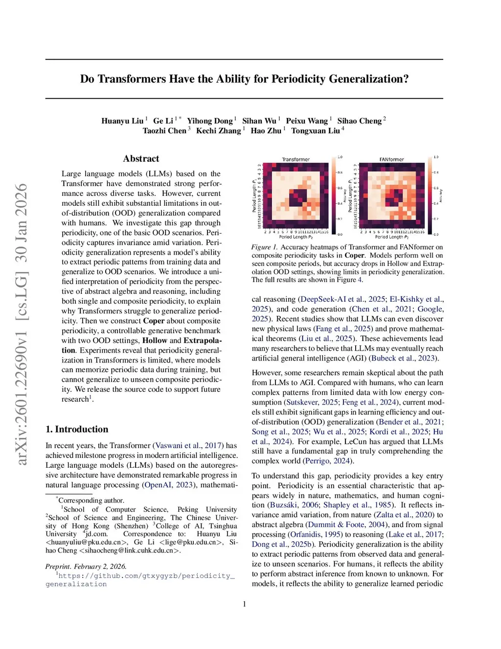 Large language models (LLMs) based on the Transformer have demonstrated strong performance across diverse tasks. However, current models still exhibit substantial limitations in out-of-distribution (OOD) generalization compared with humans. We investigate this gap through periodicity, one of the basic OOD scenarios. Periodicity captures invariance amid variation. Periodicity generalization represents a model's ability to extract periodic patterns from training data and generalize to OOD scenarios. We introduce a unified interpretation of periodicity from the perspective of abstract algebra and reasoning, including both single and composite periodicity, to explain why Transformers struggle to generalize periodicity. Then we construct Coper about composite periodicity, a controllable generative benchmark with two OOD settings, Hollow and Extrapolation. Experiments reveal that periodicity generalization in Transformers is limited, where models can memorize periodic data during training, but cannot generalize to unseen composite periodicity. We release the source code to support future research.