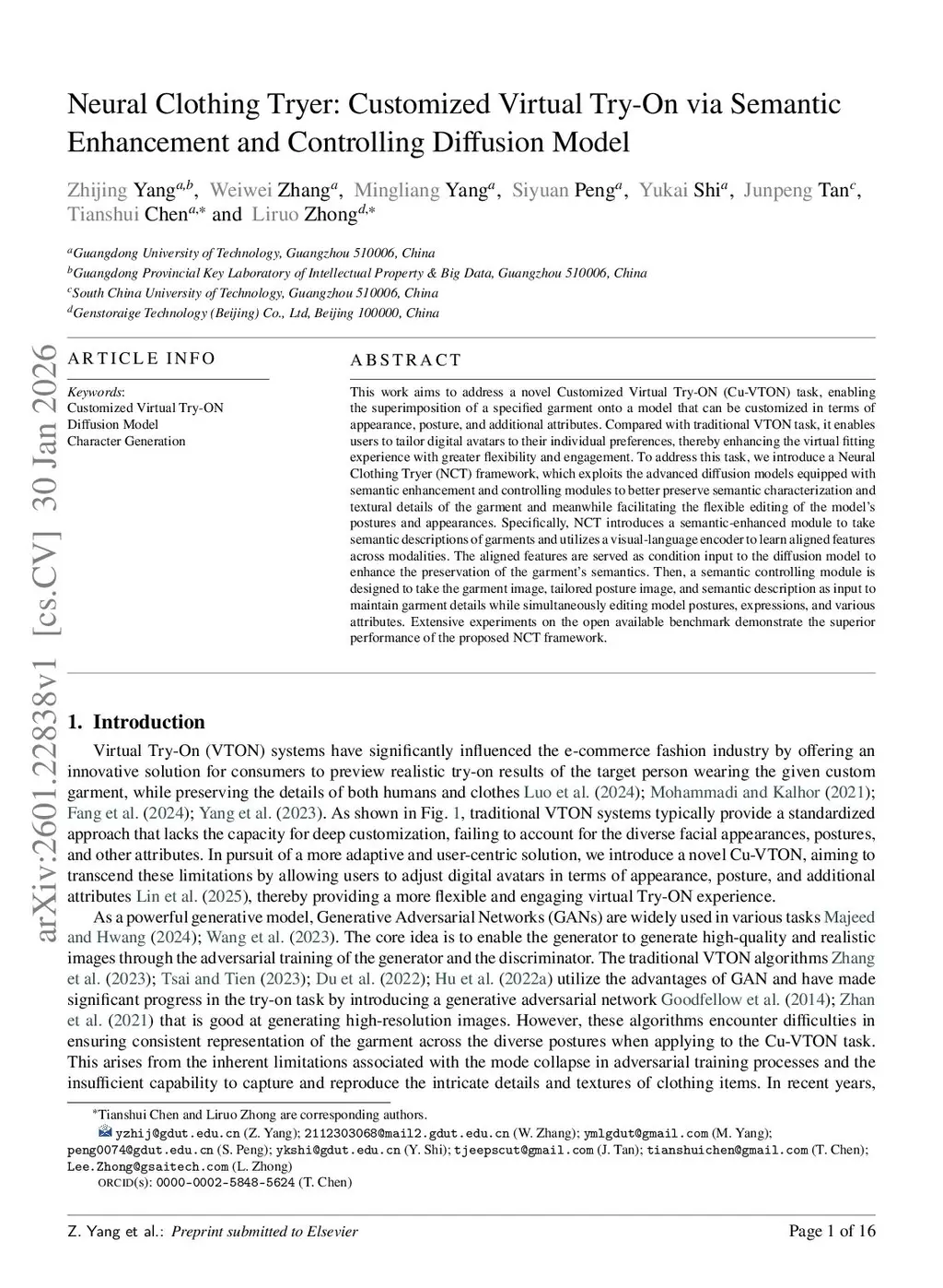 Neural Clothing Tryer: Customized Virtual Try-On via Semantic Enhancement and Controlling Diffusion Model