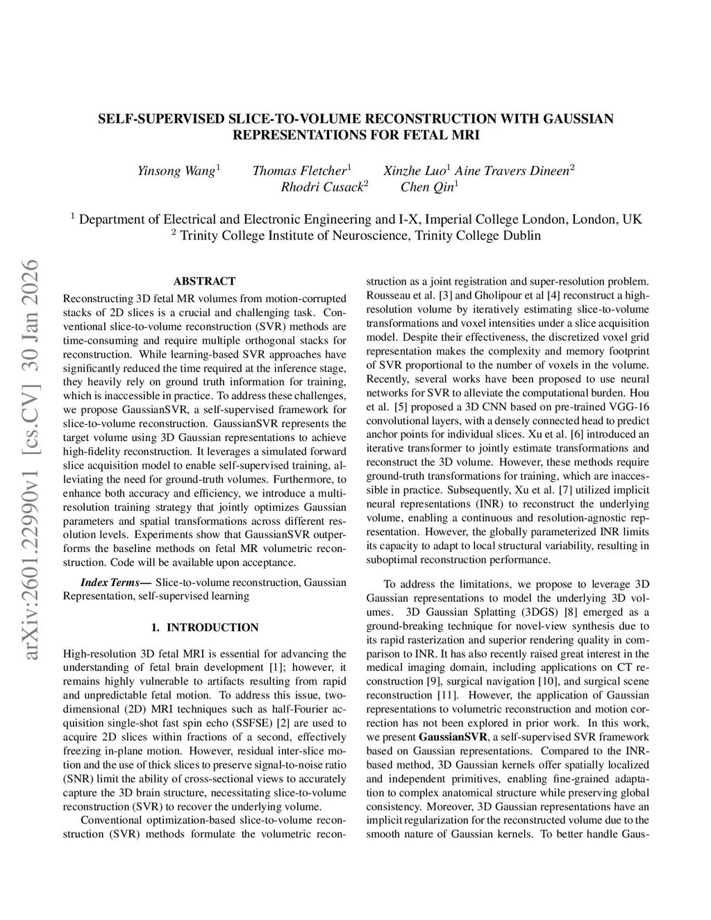 Self-Supervised Slice-to-Volume Reconstruction with Gaussian Representations for Fetal MRI