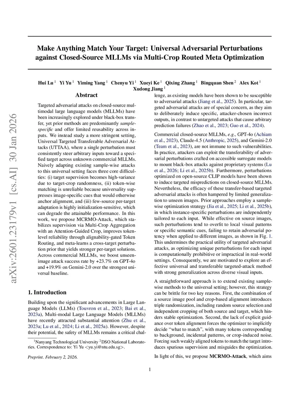 Make Anything Match Your Target: Universal Adversarial Perturbations against Closed-Source MLLMs via Multi-Crop Routed Meta Optimization
