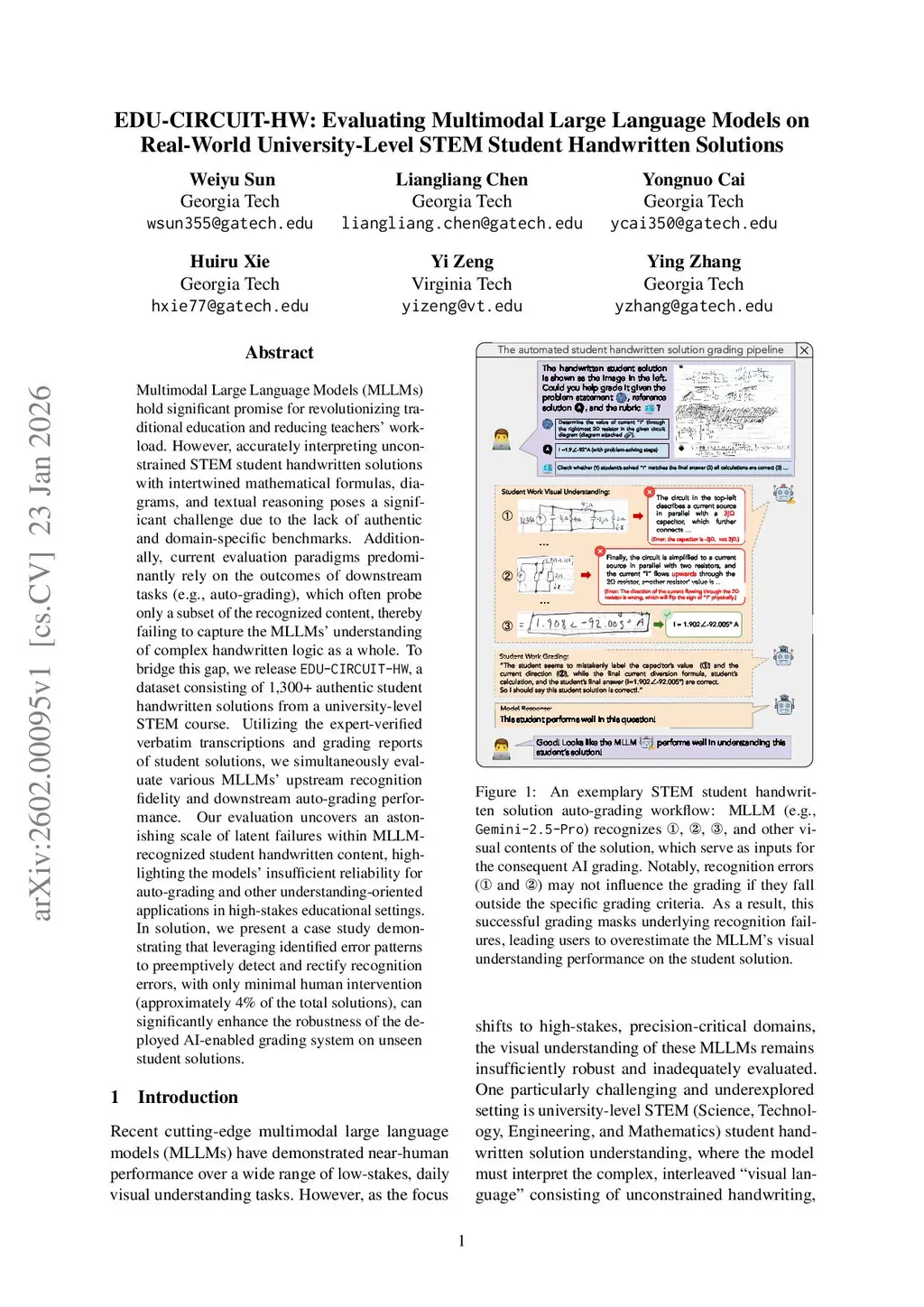 EDU-CIRCUIT-HW: Evaluating Multimodal Large Language Models on Real-World University-Level STEM Student Handwritten Solutions