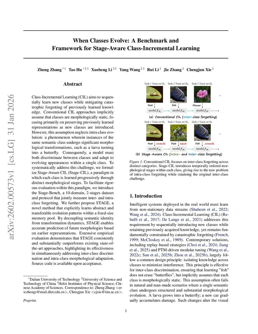 Class-Incremental Learning (CIL) aims to sequentially learn new classes while mitigating catastrophic forgetting of previously learned knowledge. Conventional CIL approaches implicitly assume that classes are morphologically static, focusing primarily on preserving previously learned representations as new classes are introduced. However, this assumption neglects intra-class evolution: a phenomenon wherein instances of the same semantic class undergo significant morphological transformations, such as a larva turning into a butterfly. Consequently, a model must both discriminate between classes and adapt to evolving appearances within a single class. To systematically address this challenge, we formalize Stage-Aware CIL (Stage-CIL), a paradigm in which each class is learned progressively through distinct morphological stages. To facilitate rigorous evaluation within this paradigm, we introduce the Stage-Bench, a 10-domain, 2-stages dataset and protocol that jointly measure inter- and intra-class forgetting. We further propose STAGE, a novel method that explicitly learns abstract and transferable evolution patterns within a fixed-size memory pool. By decoupling semantic identity from transformation dynamics, STAGE enables accurate prediction of future morphologies based on earlier representations. Extensive empirical evaluation demonstrates that STAGE consistently and substantially outperforms existing state-of-the-art approaches, highlighting its effectiveness in simultaneously addressing inter-class discrimination and intra-class morphological adaptation.