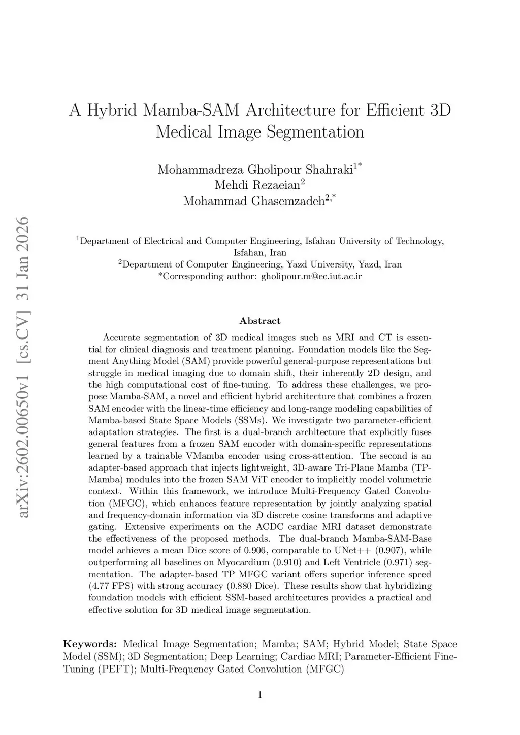 A Hybrid Mamba-SAM Architecture for Efficient 3D Medical Image Segmentation