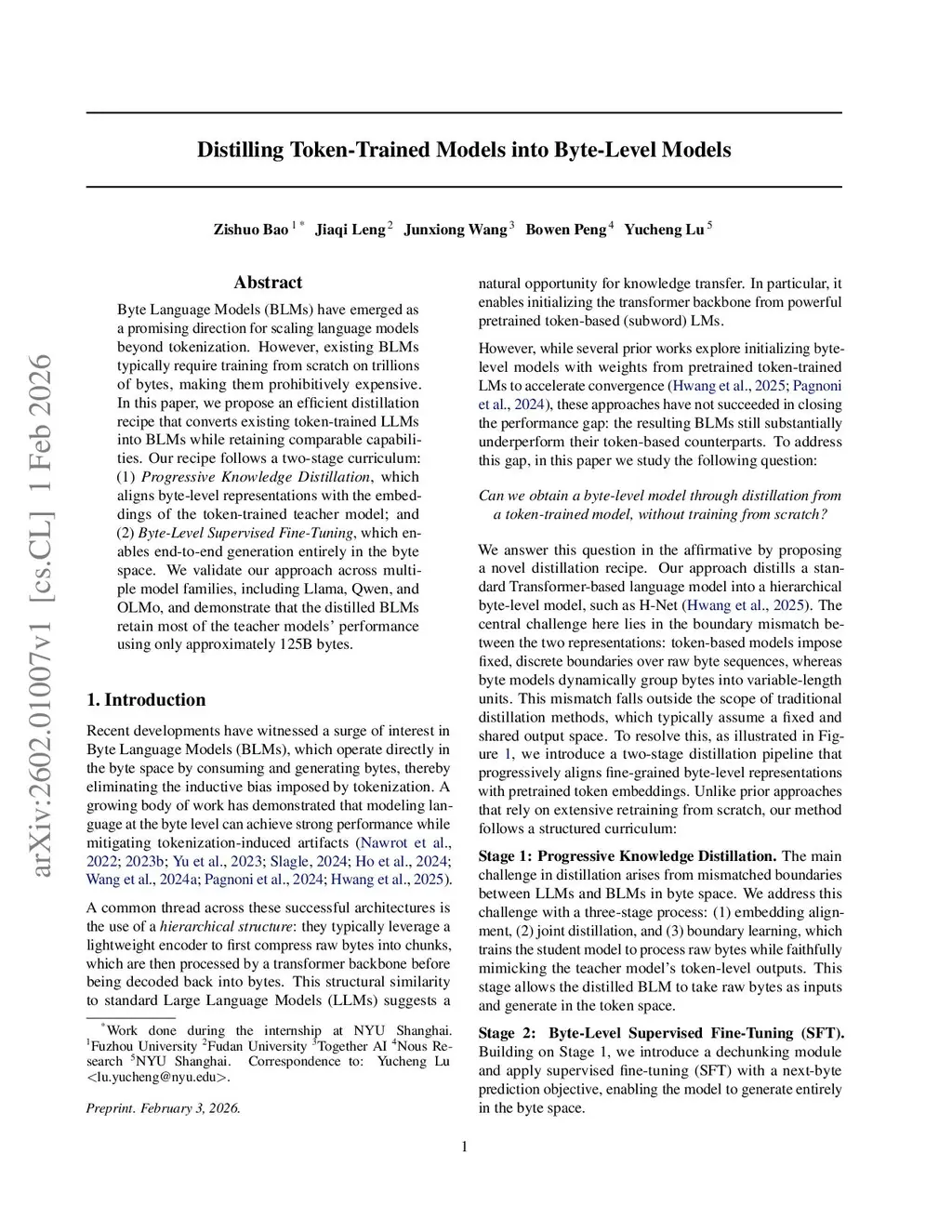 Byte Language Models (BLMs) have emerged as a promising direction for scaling language models beyond tokenization. However, existing BLMs typically require training from scratch on trillions of bytes, making them prohibitively expensive. In this paper, we propose an efficient distillation recipe that converts existing token-trained LLMs into BLMs while retaining comparable capabilities. Our recipe follows a two-stage curriculum: (1) Progressive Knowledge Distillation, which aligns byte-level representations with the embeddings of the token-trained teacher model; and (2) Byte-Level Supervised Fine-Tuning, which enables end-to-end generation entirely in the byte space. We validate our approach across multiple model families, including Llama, Qwen, and OLMo, and demonstrate that the distilled BLMs retain most of the teacher models' performance using only approximately 125B bytes.