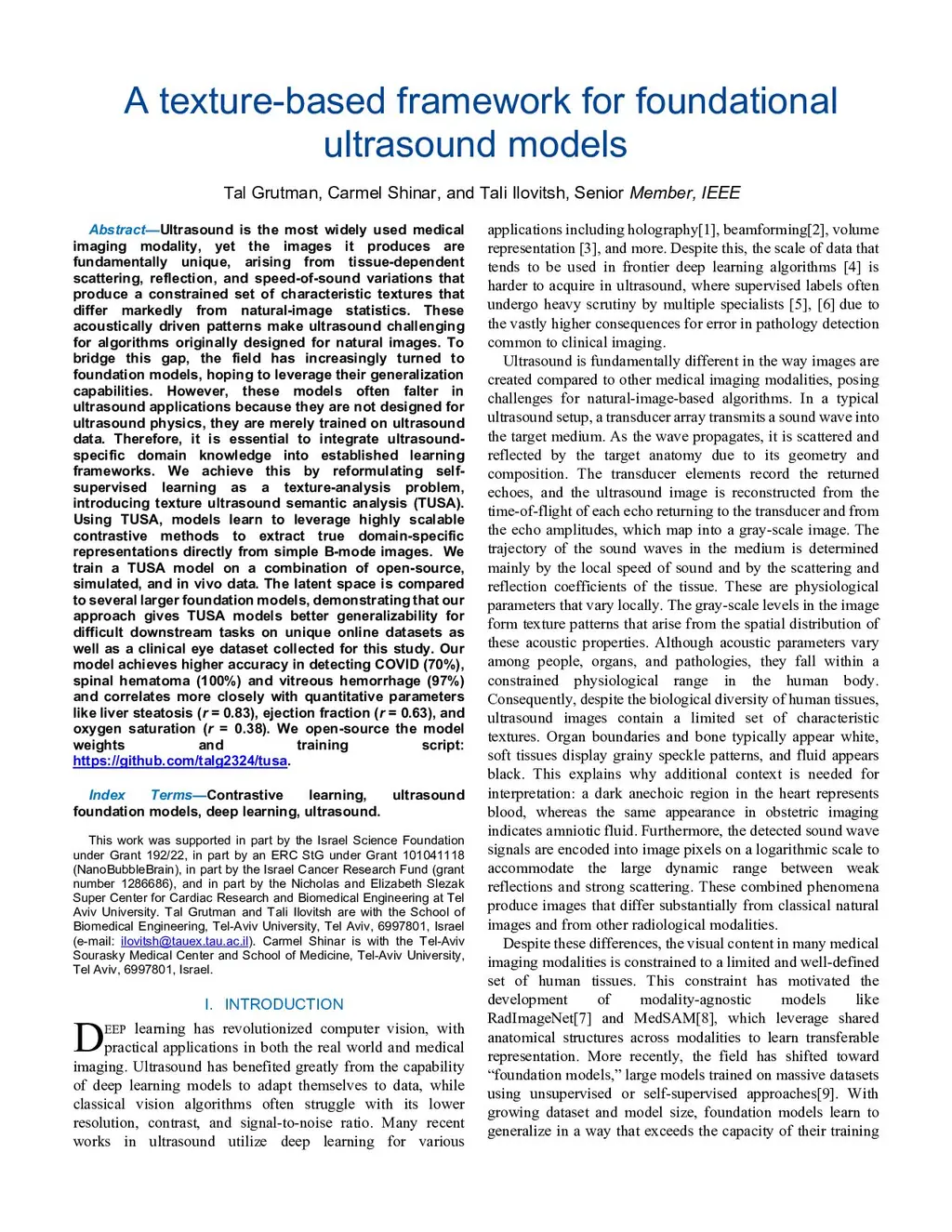 Ultrasound is the most widely used medical imaging modality, yet the images it produces are fundamentally unique, arising from tissue-dependent scattering, reflection, and speed-of-sound variations that produce a constrained set of characteristic textures that differ markedly from natural-image statistics. These acoustically driven patterns make ultrasound challenging for algorithms originally designed for natural images. To bridge this gap, the field has increasingly turned to foundation models, hoping to leverage their generalization capabilities. However, these models often falter in ultrasound applications because they are not designed for ultrasound physics, they are merely trained on ultrasound data. Therefore, it is essential to integrate ultrasound-specific domain knowledge into established learning frameworks. We achieve this by reformulating self-supervised learning as a texture-analysis problem, introducing texture ultrasound semantic analysis (TUSA). Using TUSA, models learn to leverage highly scalable contrastive methods to extract true domain-specific representations directly from simple B-mode images. We train a TUSA model on a combination of open-source, simulated, and in vivo data. The latent space is compared to several larger foundation models, demonstrating that our approach gives TUSA models better generalizability for difficult downstream tasks on unique online datasets as well as a clinical eye dataset collected for this study. Our model achieves higher accuracy in detecting COVID (70%), spinal hematoma (100%) and vitreous hemorrhage (97%) and correlates more closely with quantitative parameters like liver steatosis (r = 0.83), ejection fraction (r = 0.63), and oxygen saturation (r = 0.38). We open-source the model weights and training script:this https URL