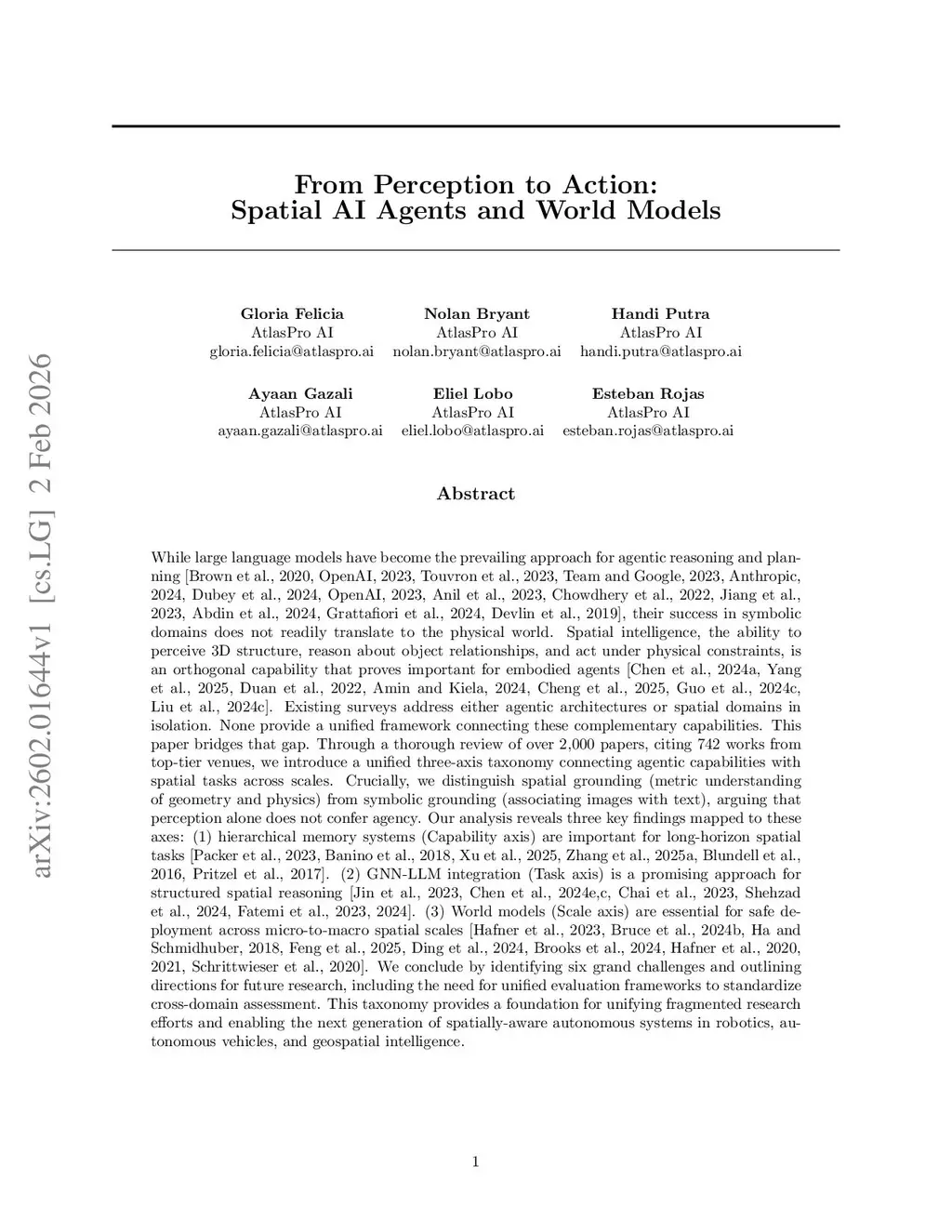 From Perception to Action: Spatial AI Agents and World Models