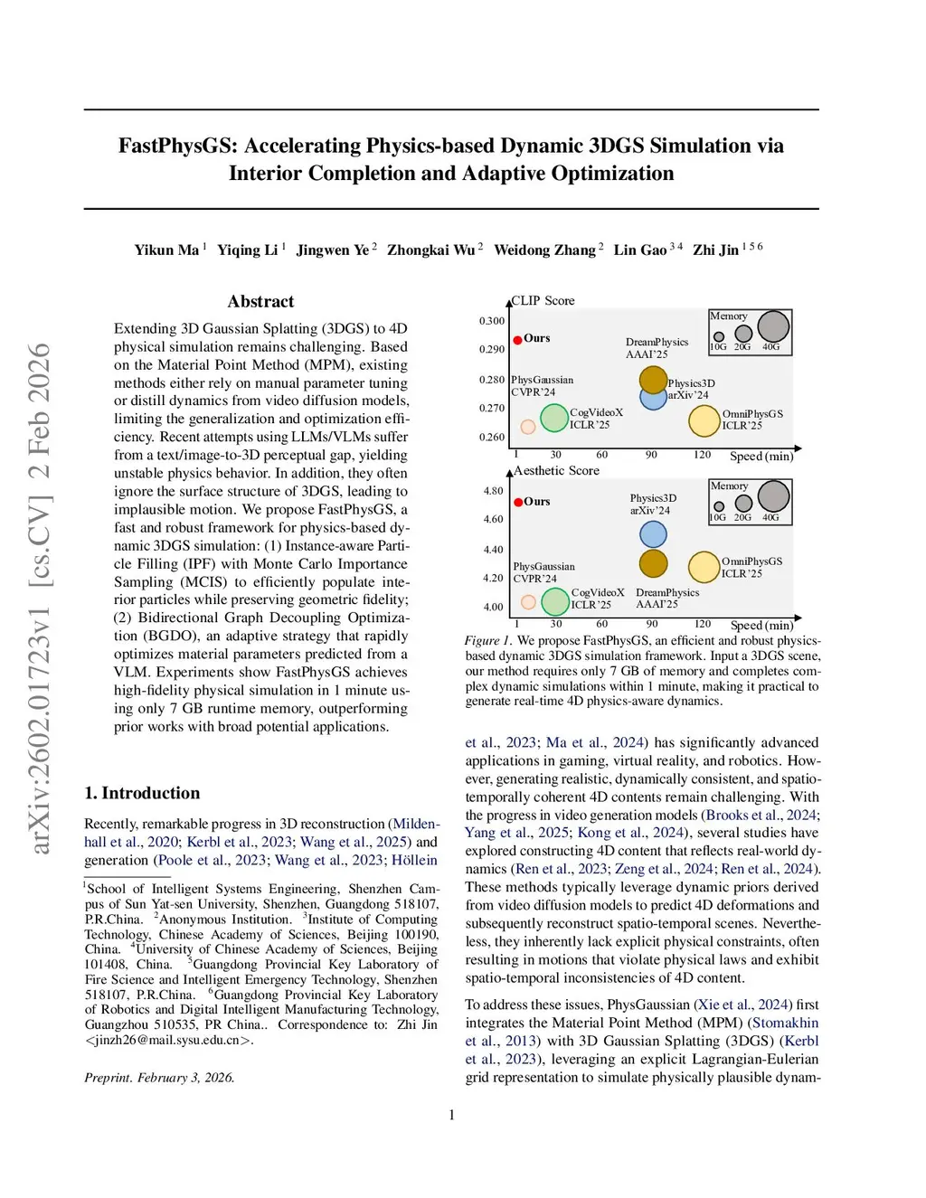 FastPhysGS: Accelerating Physics-based Dynamic 3DGS Simulation via Interior Completion and Adaptive Optimization