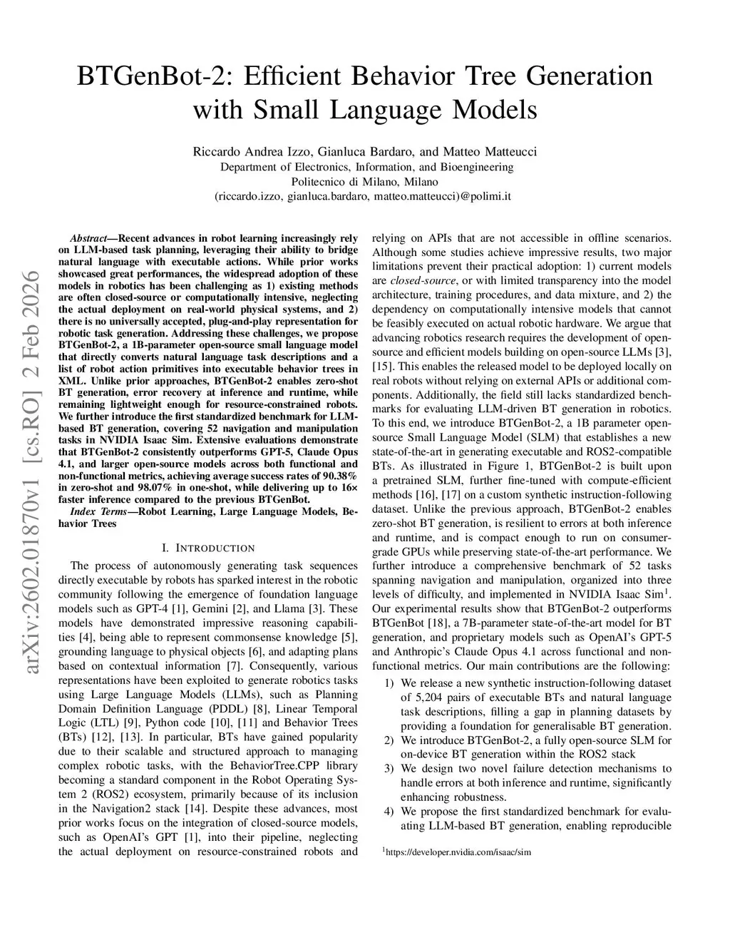 BTGenBot-2: Efficient Behavior Tree Generation with Small Language Models