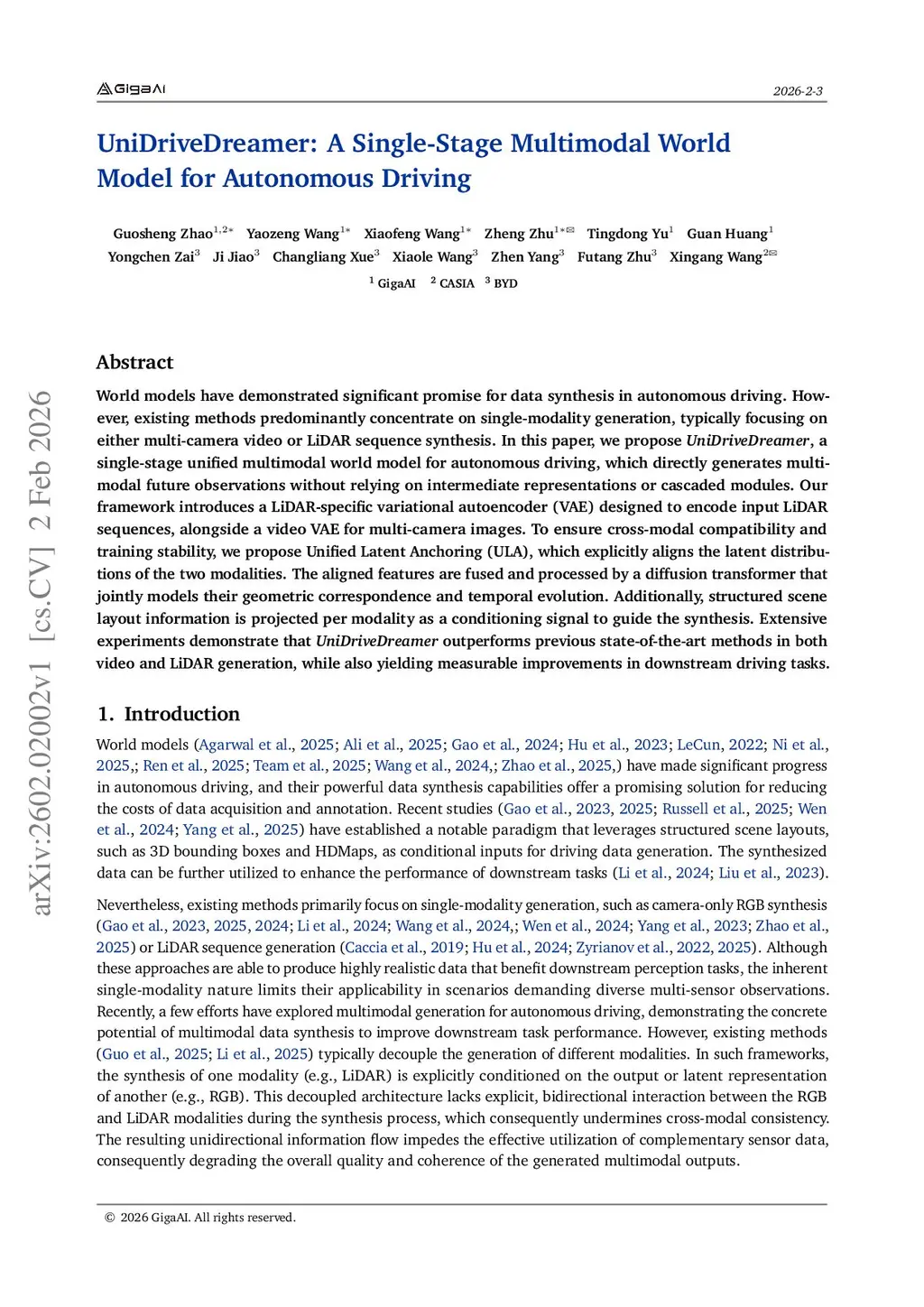 UniDriveDreamer: A Single-Stage Multimodal World Model for Autonomous Driving