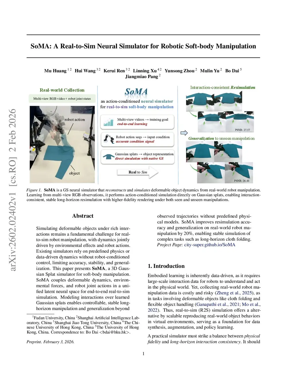 SoMA: A Real-to-Sim Neural Simulator for Robotic Soft-body Manipulation