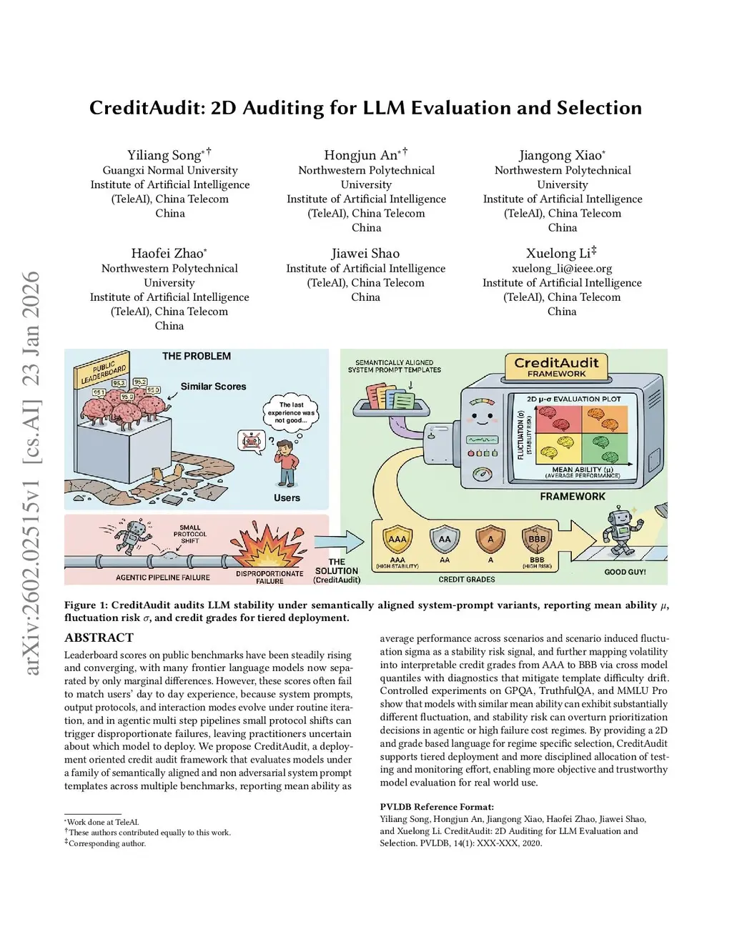 Leaderboard scores on public benchmarks have been steadily rising and converging, with many frontier language models now separated by only marginal differences. However, these scores often fail to match users' day to day experience, because system prompts, output protocols, and interaction modes evolve under routine iteration, and in agentic multi step pipelines small protocol shifts can trigger disproportionate failures, leaving practitioners uncertain about which model to deploy. We propose CreditAudit, a deployment oriented credit audit framework that evaluates models under a family of semantically aligned and non adversarial system prompt templates across multiple benchmarks, reporting mean ability as average performance across scenarios and scenario induced fluctuation sigma as a stability risk signal, and further mapping volatility into interpretable credit grades from AAA to BBB via cross model quantiles with diagnostics that mitigate template difficulty drift. Controlled experiments on GPQA, TruthfulQA, and MMLU Pro show that models with similar mean ability can exhibit substantially different fluctuation, and stability risk can overturn prioritization decisions in agentic or high failure cost regimes. By providing a 2D and grade based language for regime specific selection, CreditAudit supports tiered deployment and more disciplined allocation of testing and monitoring effort, enabling more objective and trustworthy model evaluation for real world use.