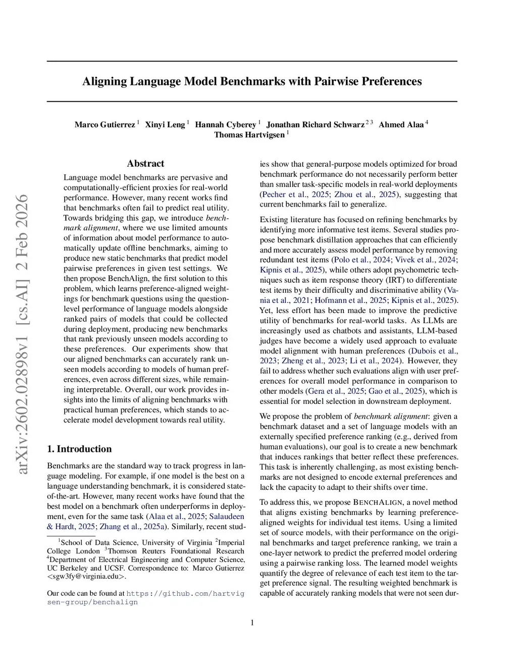 Aligning Language Model Benchmarks with Pairwise Preferences