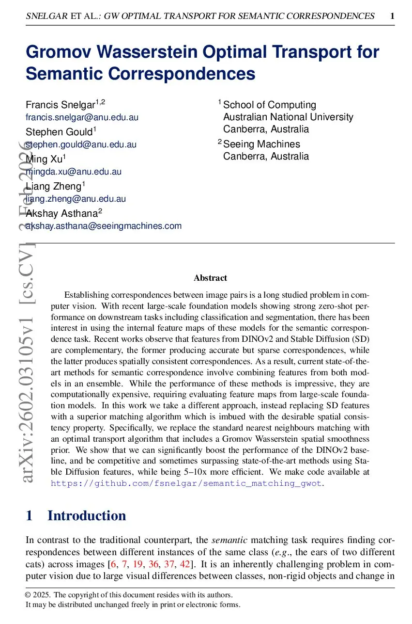 Establishing correspondences between image pairs is a long studied problem in computer vision. With recent large-scale foundation models showing strong zero-shot performance on downstream tasks including classification and segmentation, there has been interest in using the internal feature maps of these models for the semantic correspondence task. Recent works observe that features from DINOv2 and Stable Diffusion (SD) are complementary, the former producing accurate but sparse correspondences, while the latter produces spatially consistent correspondences. As a result, current state-of-the-art methods for semantic correspondence involve combining features from both models in an ensemble. While the performance of these methods is impressive, they are computationally expensive, requiring evaluating feature maps from large-scale foundation models. In this work we take a different approach, instead replacing SD features with a superior matching algorithm which is imbued with the desirable spatial consistency property. Specifically, we replace the standard nearest neighbours matching with an optimal transport algorithm that includes a Gromov Wasserstein spatial smoothness prior. We show that we can significantly boost the performance of the DINOv2 baseline, and be competitive and sometimes surpassing state-of-the-art methods using Stable Diffusion features, while being 5--10x more efficient. We make code available atthis https URL.