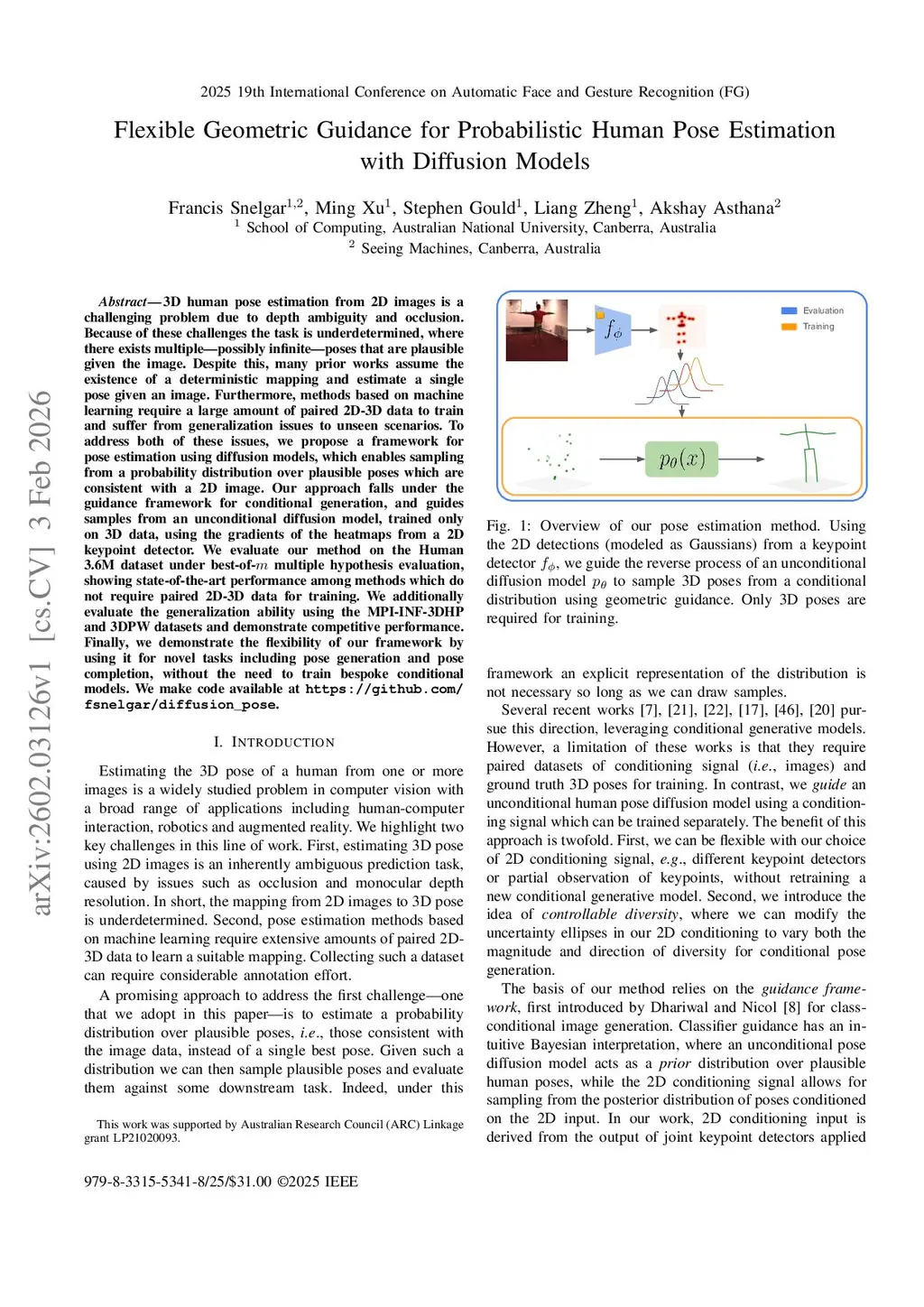 Flexible Geometric Guidance for Probabilistic Human Pose Estimation with Diffusion Models
