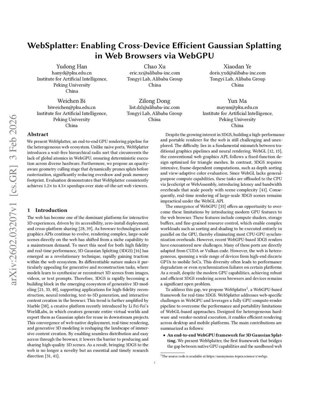 We present WebSplatter, an end-to-end GPU rendering pipeline for the heterogeneous web ecosystem. Unlike naive ports, WebSplatter introduces a wait-free hierarchical radix sort that circumvents the lack of global atomics in WebGPU, ensuring deterministic execution across diverse hardware. Furthermore, we propose an opacity-aware geometry culling stage that dynamically prunes splats before rasterization, significantly reducing overdraw and peak memory footprint. Evaluation demonstrates that WebSplatter consistently achieves 1.2 to 4.5 speedups over state-of-the-art web viewers.