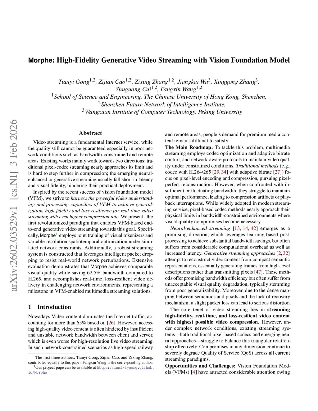 Morphe: High-Fidelity Generative Video Streaming with Vision Foundation Model