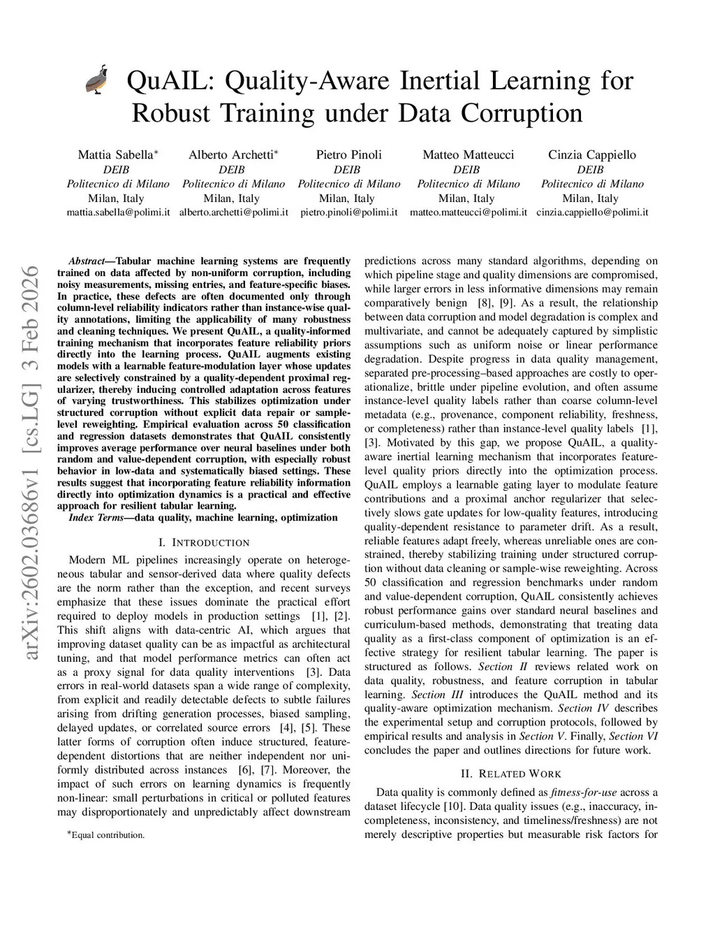 QuAIL: Quality-Aware Inertial Learning for Robust Training under Data Corruption