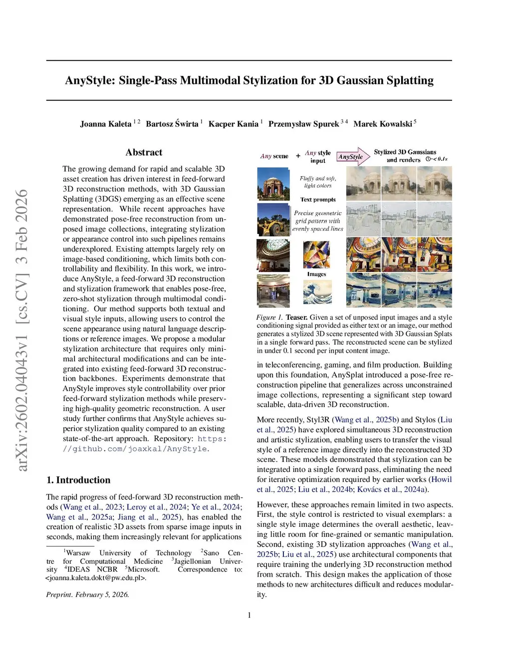 AnyStyle: Single-Pass Multimodal Stylization for 3D Gaussian Splatting