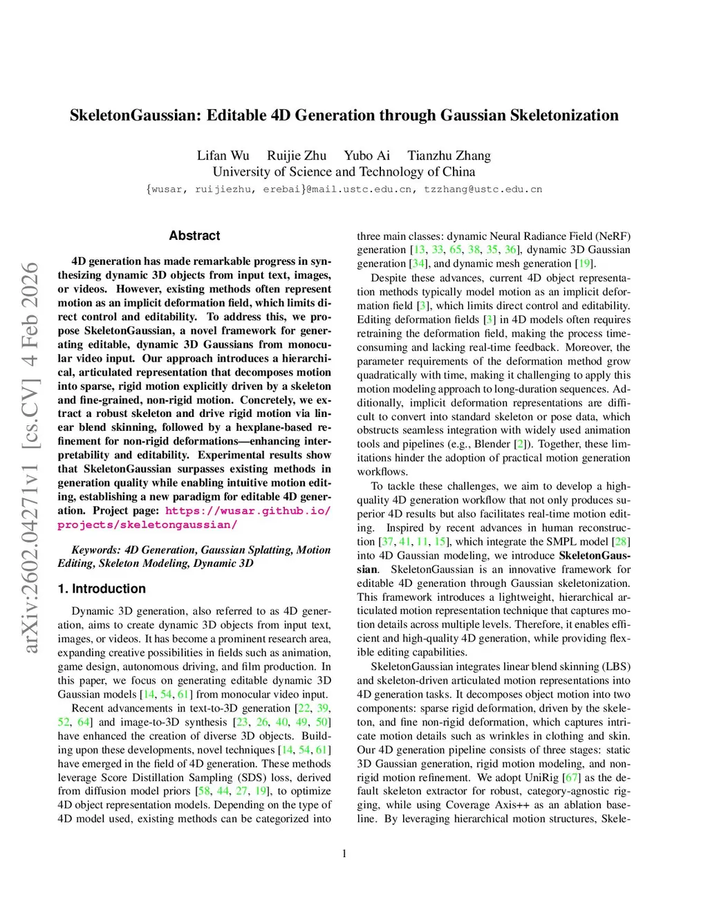 SkeletonGaussian: Editable 4D Generation through Gaussian Skeletonization
