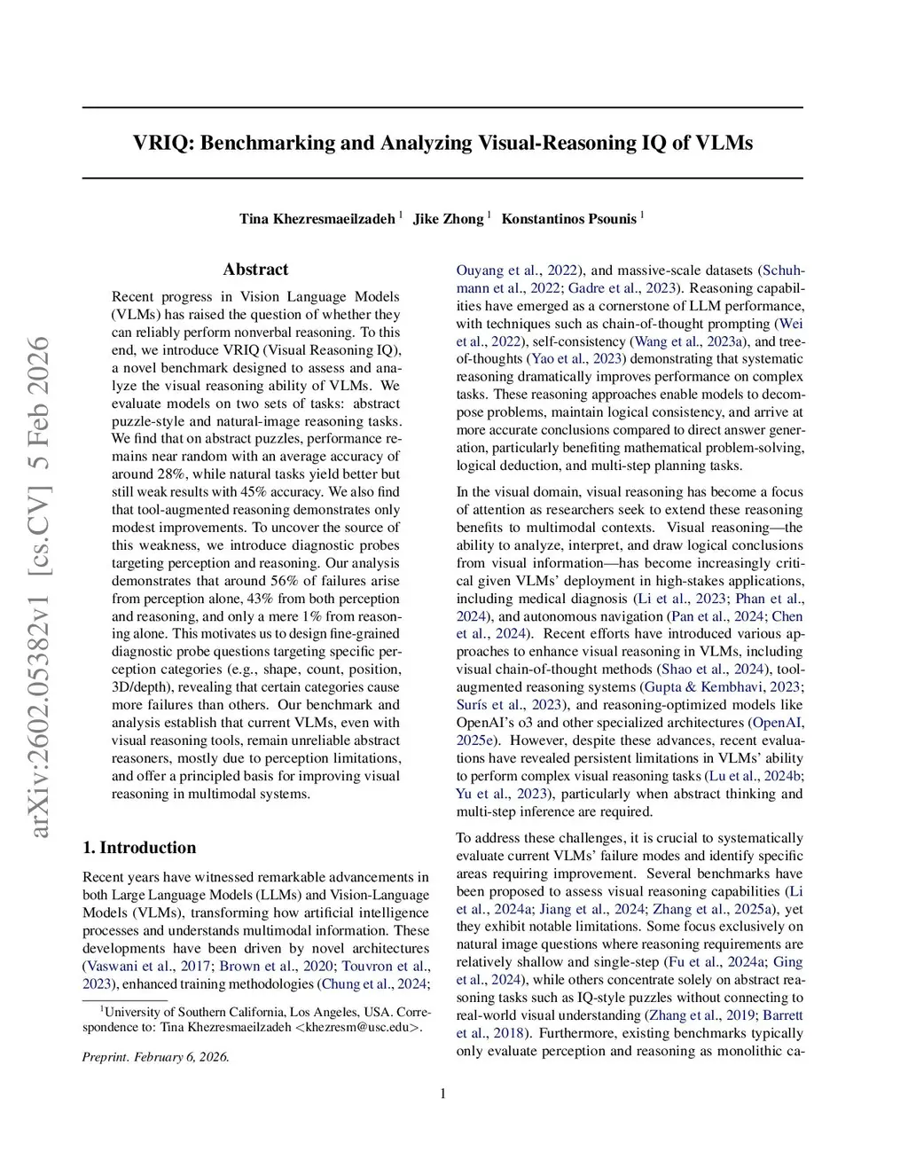Recent progress in Vision Language Models (VLMs) has raised the question of whether they can reliably perform nonverbal reasoning. To this end, we introduce VRIQ (Visual Reasoning IQ), a novel benchmark designed to assess and analyze the visual reasoning ability of VLMs. We evaluate models on two sets of tasks: abstract puzzle-style and natural-image reasoning tasks. We find that on abstract puzzles, performance remains near random with an average accuracy of around 28%, while natural tasks yield better but still weak results with 45% accuracy. We also find that tool-augmented reasoning demonstrates only modest improvements. To uncover the source of this weakness, we introduce diagnostic probes targeting perception and reasoning. Our analysis demonstrates that around 56% of failures arise from perception alone, 43% from both perception and reasoning, and only a mere 1% from reasoning alone. This motivates us to design fine-grained diagnostic probe questions targeting specific perception categories (e.g., shape, count, position, 3D/depth), revealing that certain categories cause more failures than others. Our benchmark and analysis establish that current VLMs, even with visual reasoning tools, remain unreliable abstract reasoners, mostly due to perception limitations, and offer a principled basis for improving visual reasoning in multimodal systems.