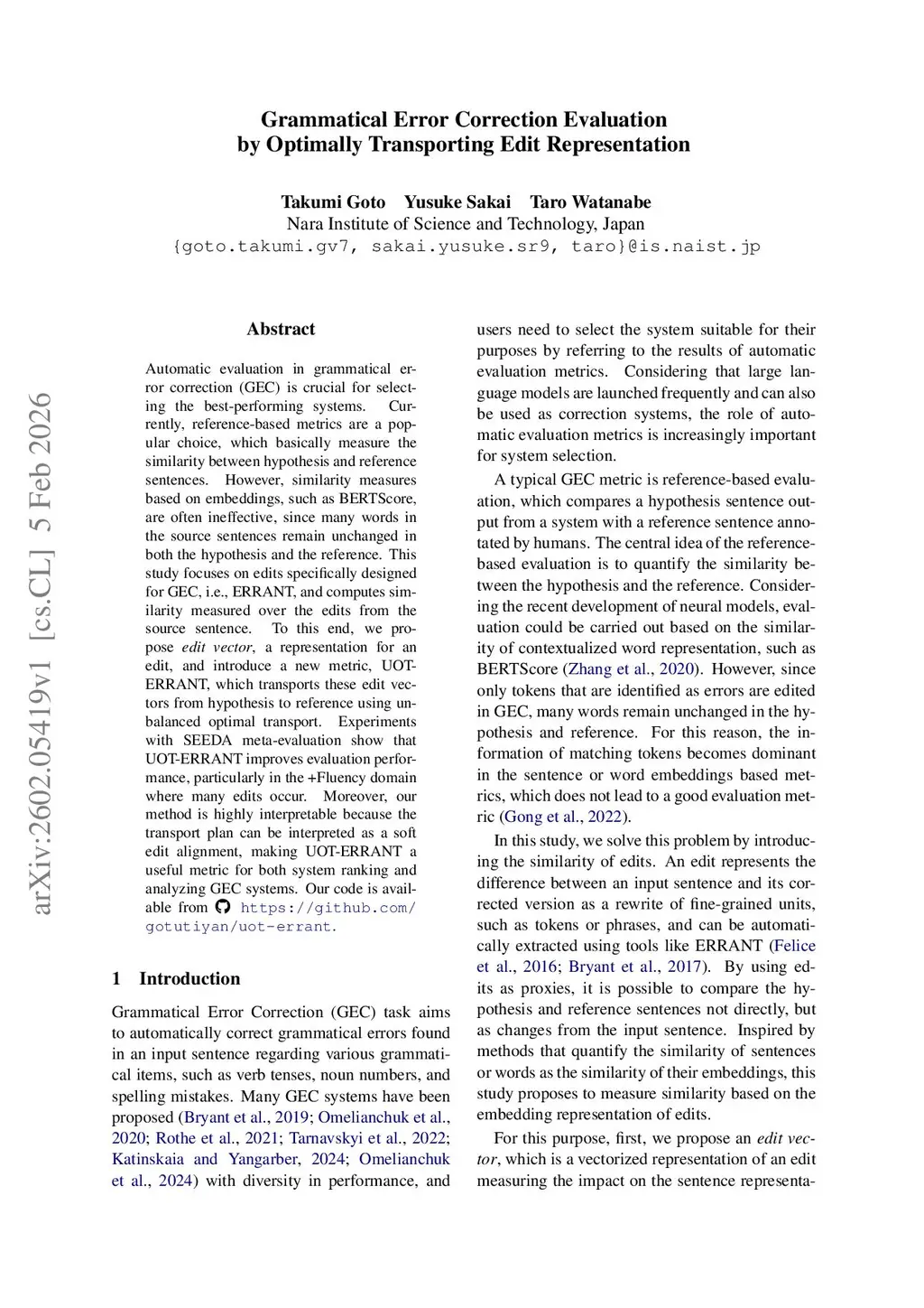 Grammatical Error Correction Evaluation by Optimally Transporting Edit Representation