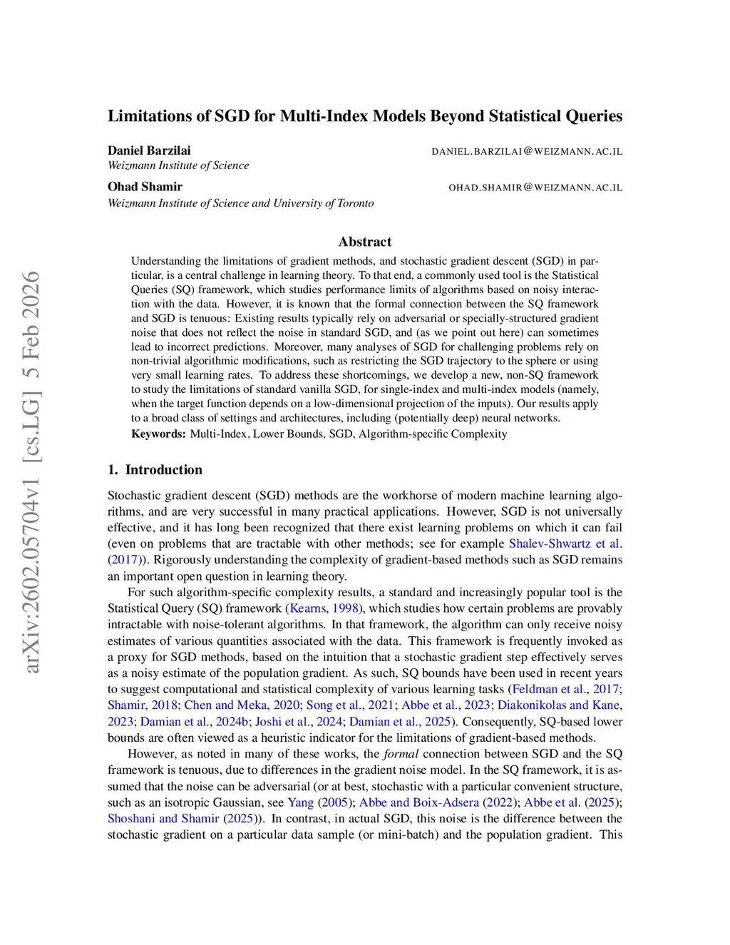 Understanding the limitations of gradient methods, and stochastic gradient descent (SGD) in particular, is a central challenge in learning theory. To that end, a commonly used tool is the Statistical Queries (SQ) framework, which studies performance limits of algorithms based on noisy interaction with the data. However, it is known that the formal connection between the SQ framework and SGD is tenuous: Existing results typically rely on adversarial or specially-structured gradient noise that does not reflect the noise in standard SGD, and (as we point out here) can sometimes lead to incorrect predictions. Moreover, many analyses of SGD for challenging problems rely on non-trivial algorithmic modifications, such as restricting the SGD trajectory to the sphere or using very small learning rates. To address these shortcomings, we develop a new, non-SQ framework to study the limitations of standard vanilla SGD, for single-index and multi-index models (namely, when the target function depends on a low-dimensional projection of the inputs). Our results apply to a broad class of settings and architectures, including (potentially deep) neural networks.