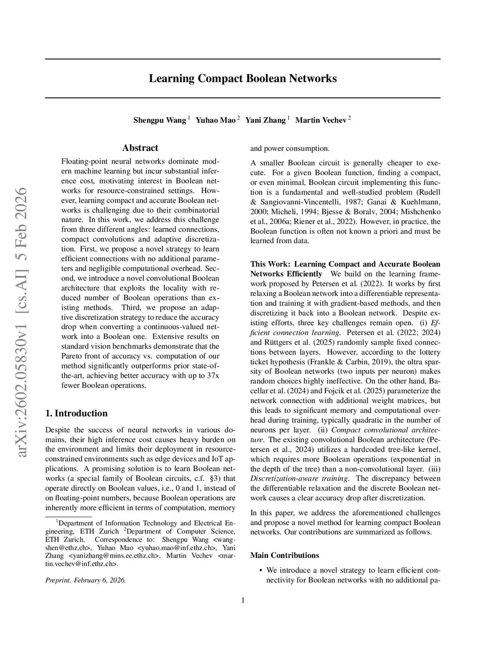 Floating-point neural networks dominate modern machine learning but incur substantial inference cost, motivating interest in Boolean networks for resource-constrained settings. However, learning compact and accurate Boolean networks is challenging due to their combinatorial nature. In this work, we address this challenge from three different angles: learned connections, compact convolutions and adaptive discretization. First, we propose a novel strategy to learn efficient connections with no additional parameters and negligible computational overhead. Second, we introduce a novel convolutional Boolean architecture that exploits the locality with reduced number of Boolean operations than existing methods. Third, we propose an adaptive discretization strategy to reduce the accuracy drop when converting a continuous-valued network into a Boolean one. Extensive results on standard vision benchmarks demonstrate that the Pareto front of accuracy vs. computation of our method significantly outperforms prior state-of-the-art, achieving better accuracy with up to 37x fewer Boolean operations.