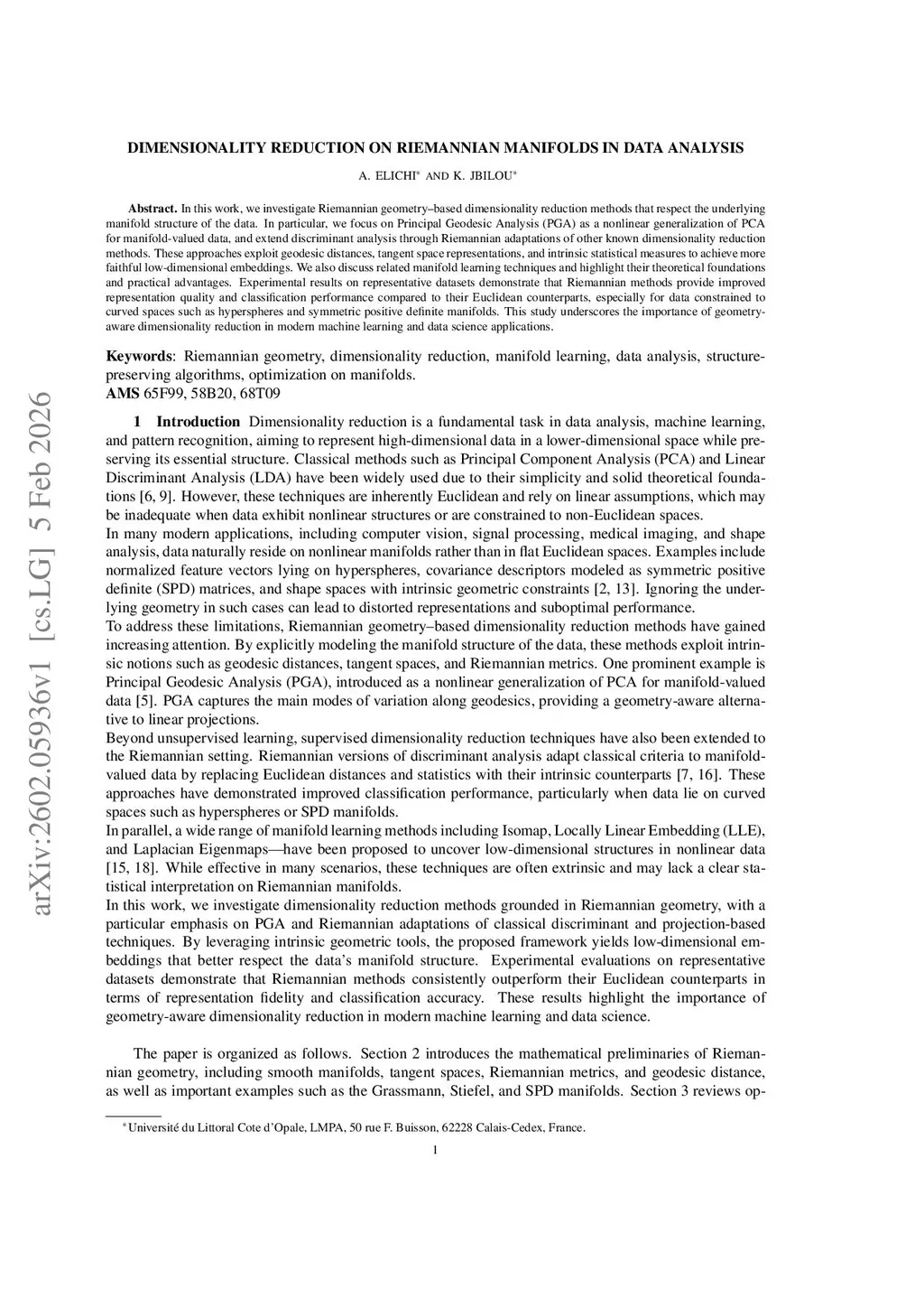 Dimensionality Reduction on Riemannian Manifolds in Data Analysis