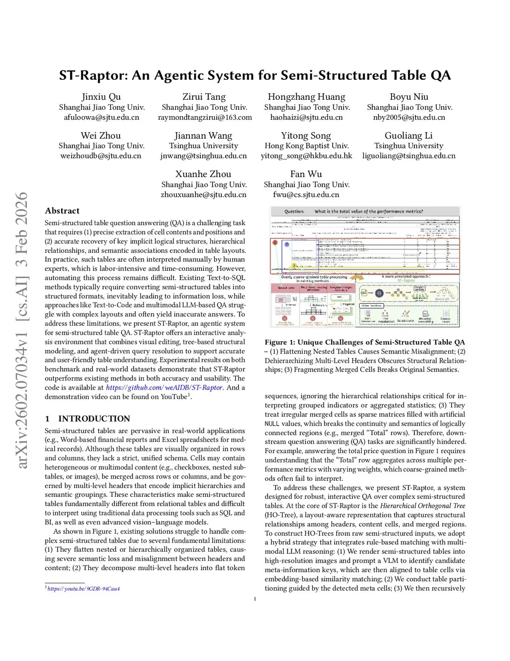ST-Raptor: An Agentic System for Semi-Structured Table QA