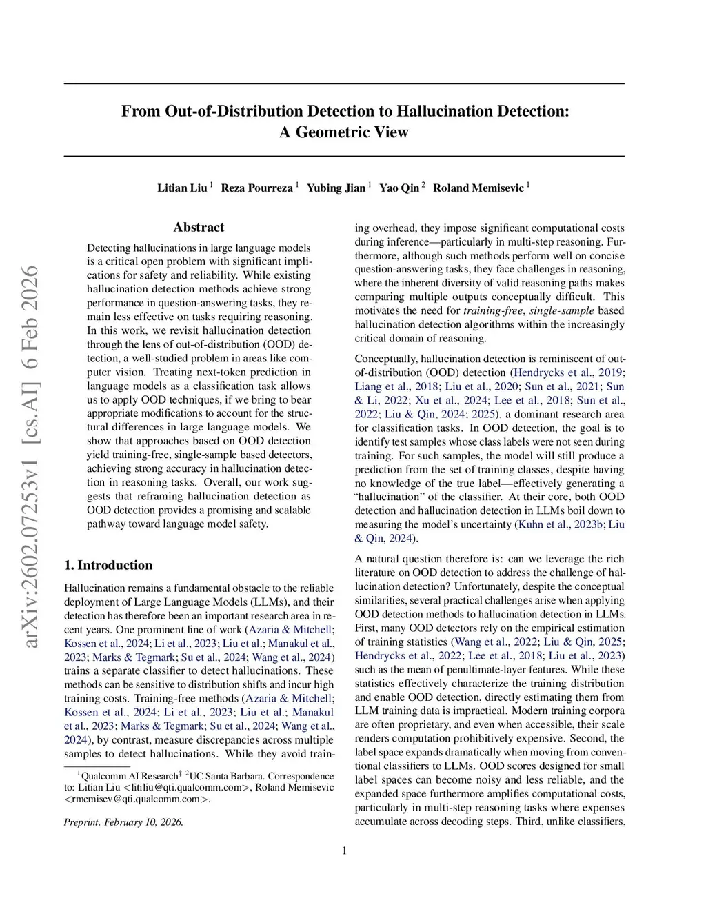 From Out-of-Distribution Detection to Hallucination Detection: A Geometric View