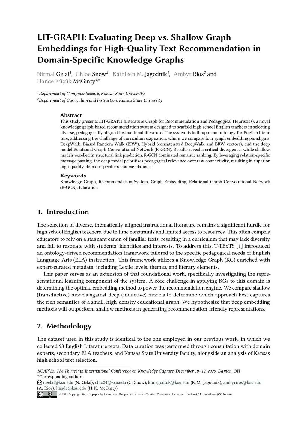 LIT-GRAPH: Evaluating Deep vs. Shallow Graph Embeddings for High-Quality Text Recommendation in Domain-Specific Knowledge Graphs