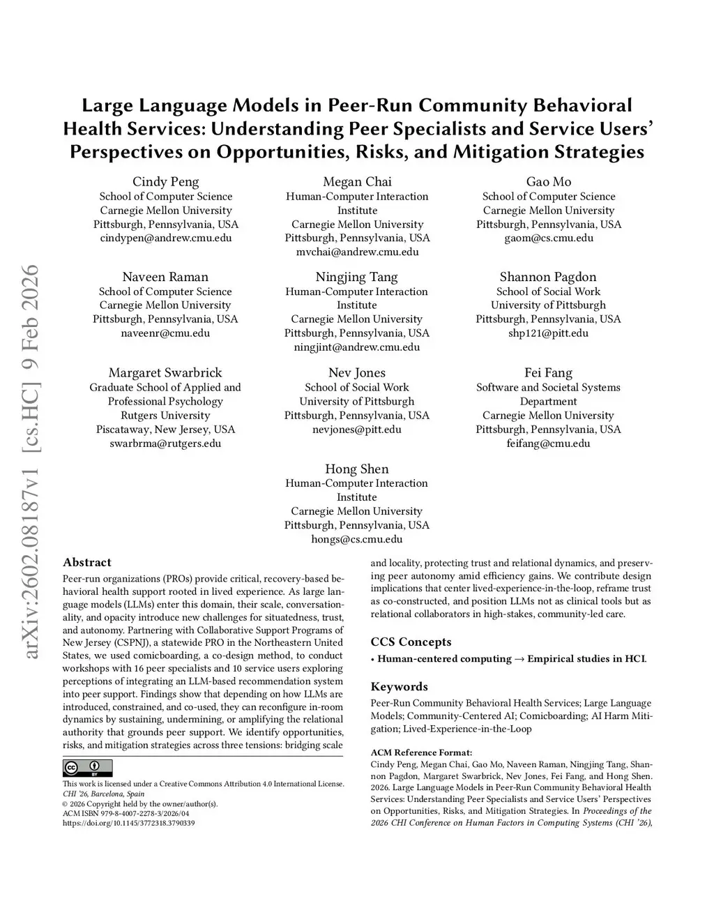 Peer-run organizations (PROs) provide critical, recovery-based behavioral health support rooted in lived experience. As large language models (LLMs) enter this domain, their scale, conversationality, and opacity introduce new challenges for situatedness, trust, and autonomy. Partnering with Collaborative Support Programs of New Jersey (CSPNJ), a statewide PRO in the Northeastern United States, we used comicboarding, a co-design method, to conduct workshops with 16 peer specialists and 10 service users exploring perceptions of integrating an LLM-based recommendation system into peer support. Findings show that depending on how LLMs are introduced, constrained, and co-used, they can reconfigure in-room dynamics by sustaining, undermining, or amplifying the relational authority that grounds peer support. We identify opportunities, risks, and mitigation strategies across three tensions: bridging scale and locality, protecting trust and relational dynamics, and preserving peer autonomy amid efficiency gains. We contribute design implications that center lived-experience-in-the-loop, reframe trust as co-constructed, and position LLMs not as clinical tools but as relational collaborators in high-stakes, community-led care.