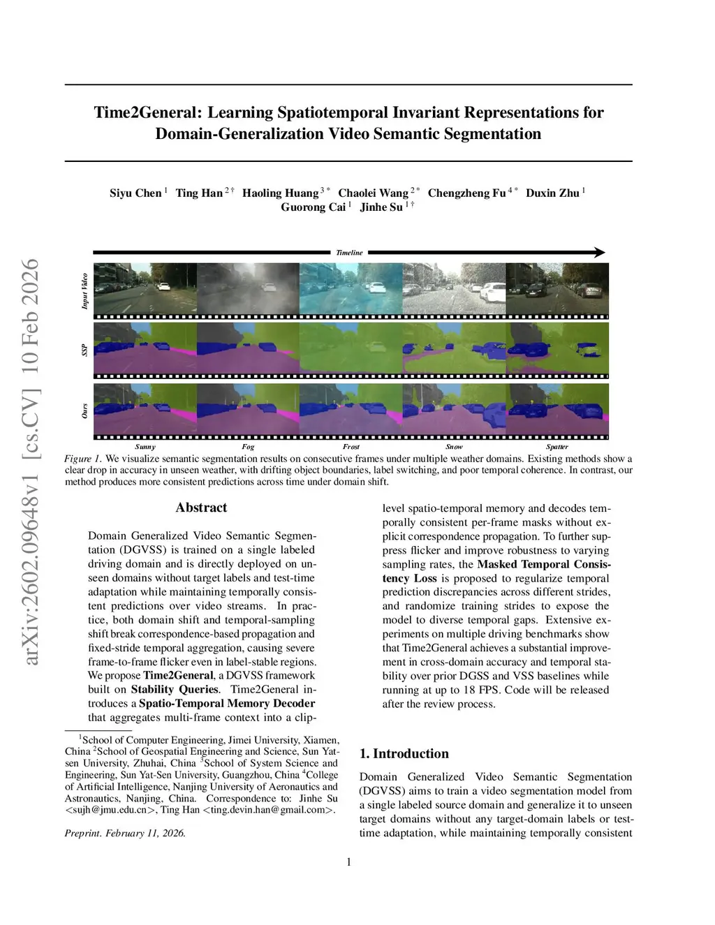 Time2General: Learning Spatiotemporal Invariant Representations for Domain-Generalization Video Semantic Segmentation