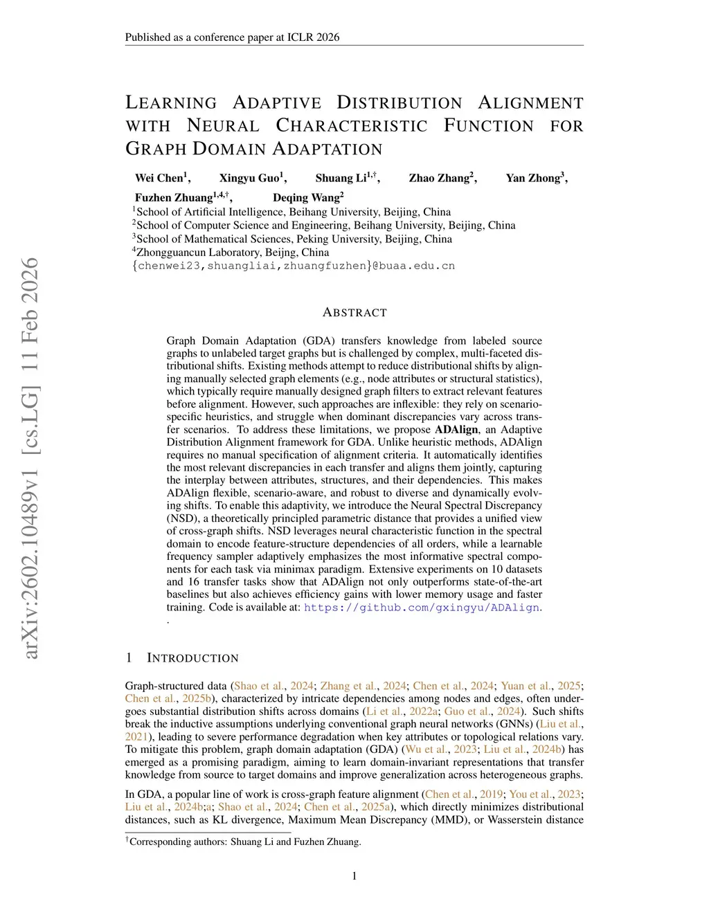 Learning Adaptive Distribution Alignment with Neural Characteristic Function for Graph Domain Adaptation