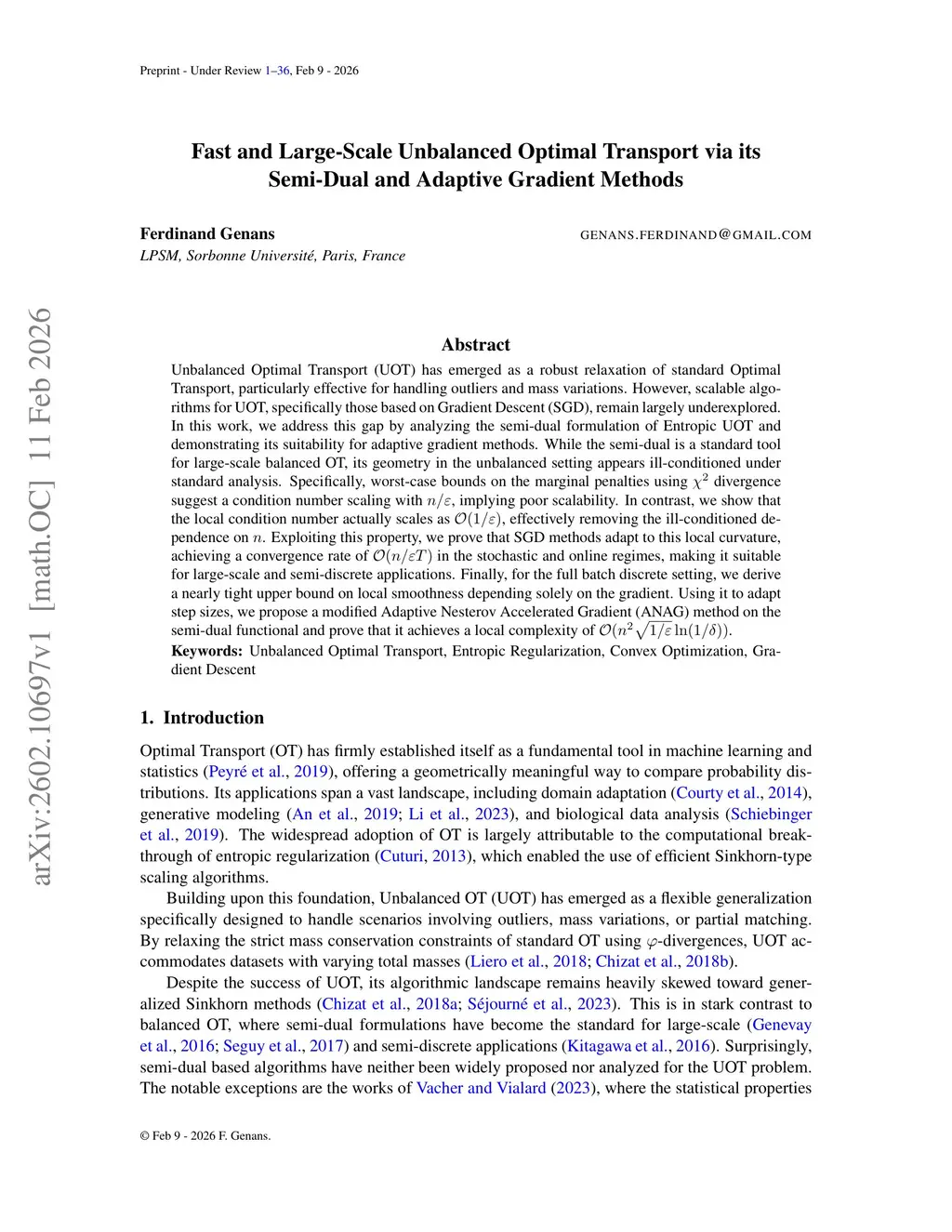 Fast and Large-Scale Unbalanced Optimal Transport via its Semi-Dual and Adaptive Gradient Methods