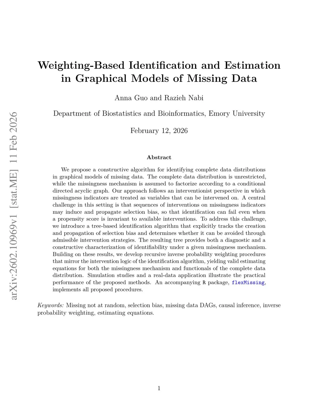 We propose a constructive algorithm for identifying complete data distributions in graphical models of missing data. The complete data distribution is unrestricted, while the missingness mechanism is assumed to factorize according to a conditional directed acyclic graph. Our approach follows an interventionist perspective in which missingness indicators are treated as variables that can be intervened on. A central challenge in this setting is that sequences of interventions on missingness indicators may induce and propagate selection bias, so that identification can fail even when a propensity score is invariant to available interventions. To address this challenge, we introduce a tree-based identification algorithm that explicitly tracks the creation and propagation of selection bias and determines whether it can be avoided through admissible intervention strategies. The resulting tree provides both a diagnostic and a constructive characterization of identifiability under a given missingness mechanism. Building on these results, we develop recursive inverse probability weighting procedures that mirror the intervention logic of the identification algorithm, yielding valid estimating equations for both the missingness mechanism and functionals of the complete data distribution. Simulation studies and a real-data application illustrate the practical performance of the proposed methods. An accompanying R package, flexMissing, implements all proposed procedures.