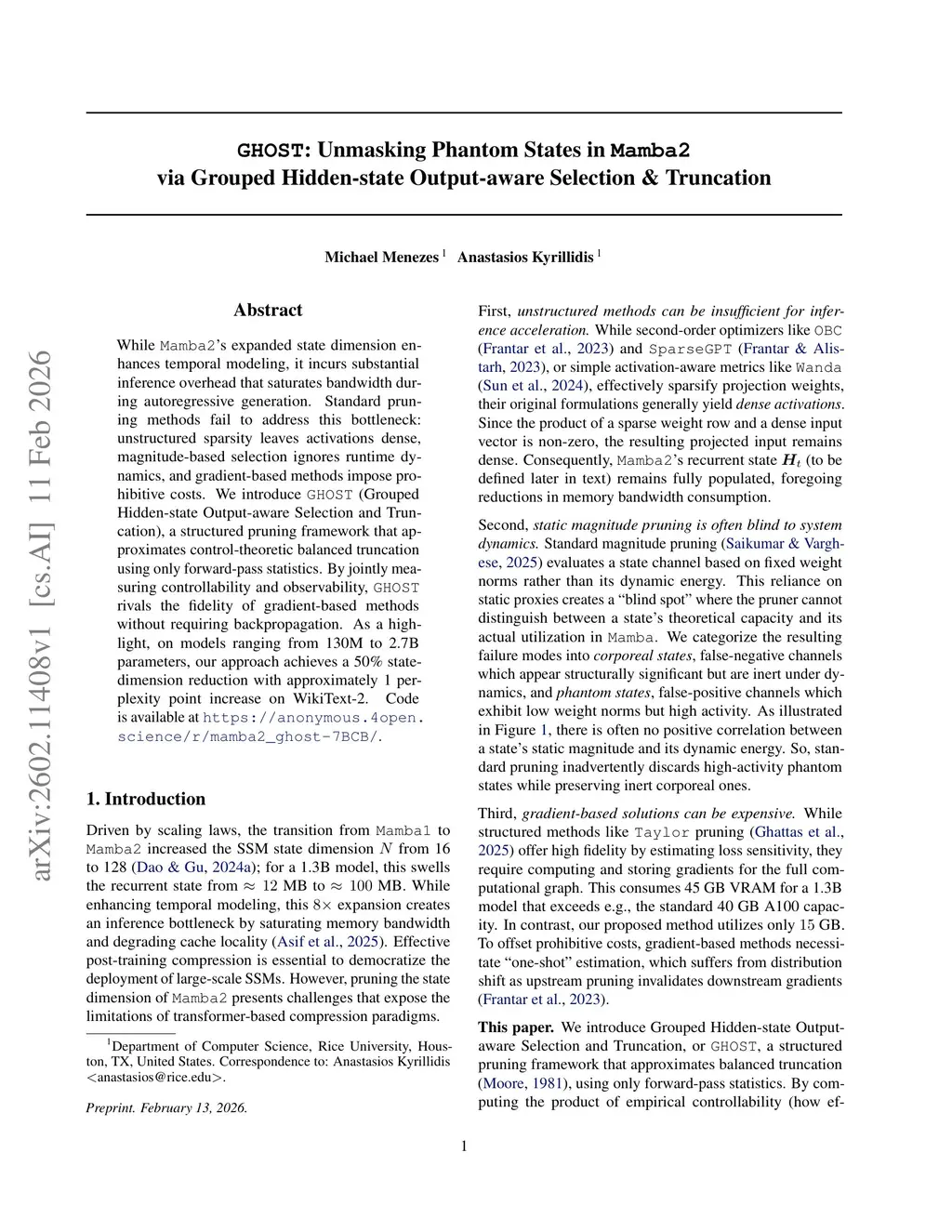 GHOST: Unmasking Phantom States in Mamba2 via Grouped Hidden-state Output-aware Selection & Truncation
