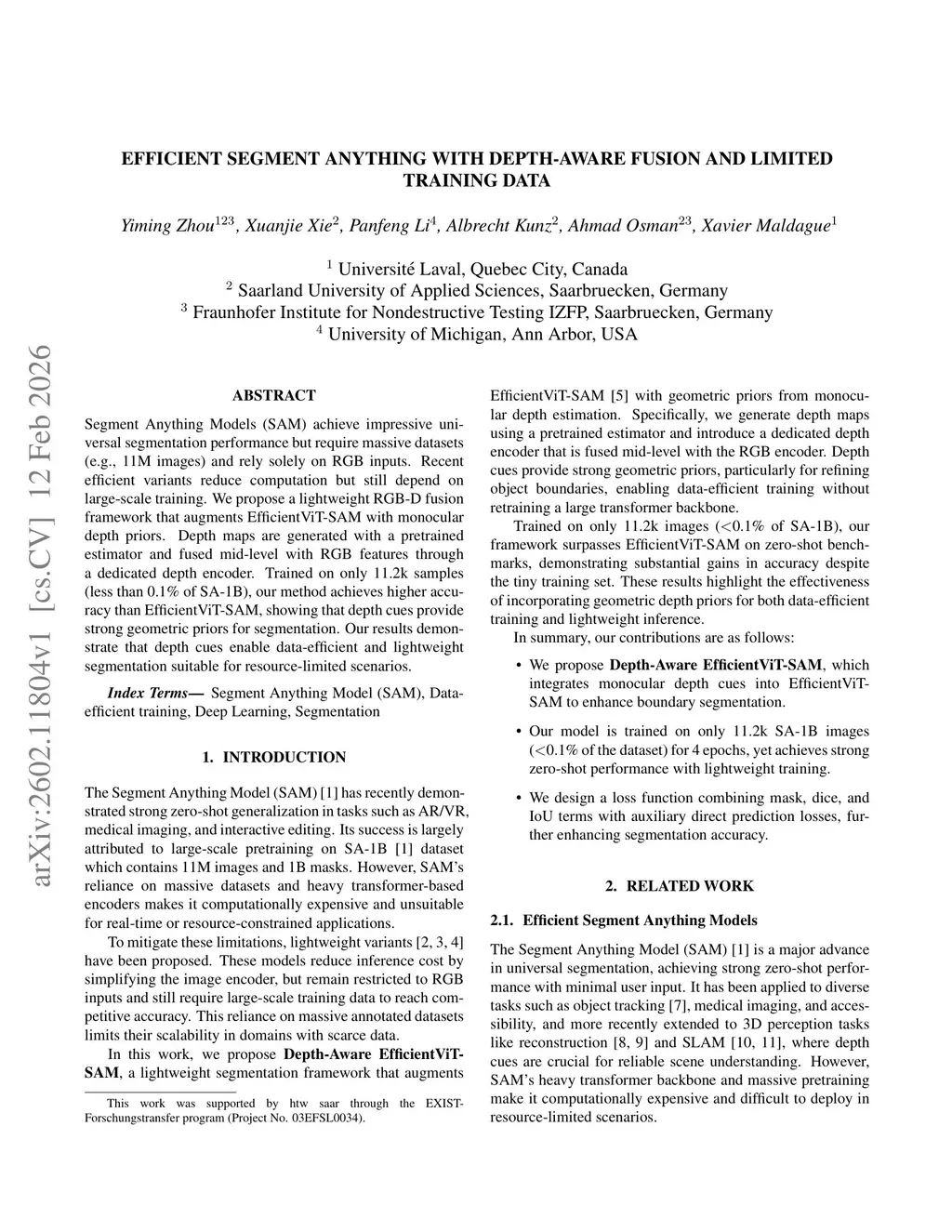 Efficient Segment Anything with Depth-Aware Fusion and Limited Training Data
