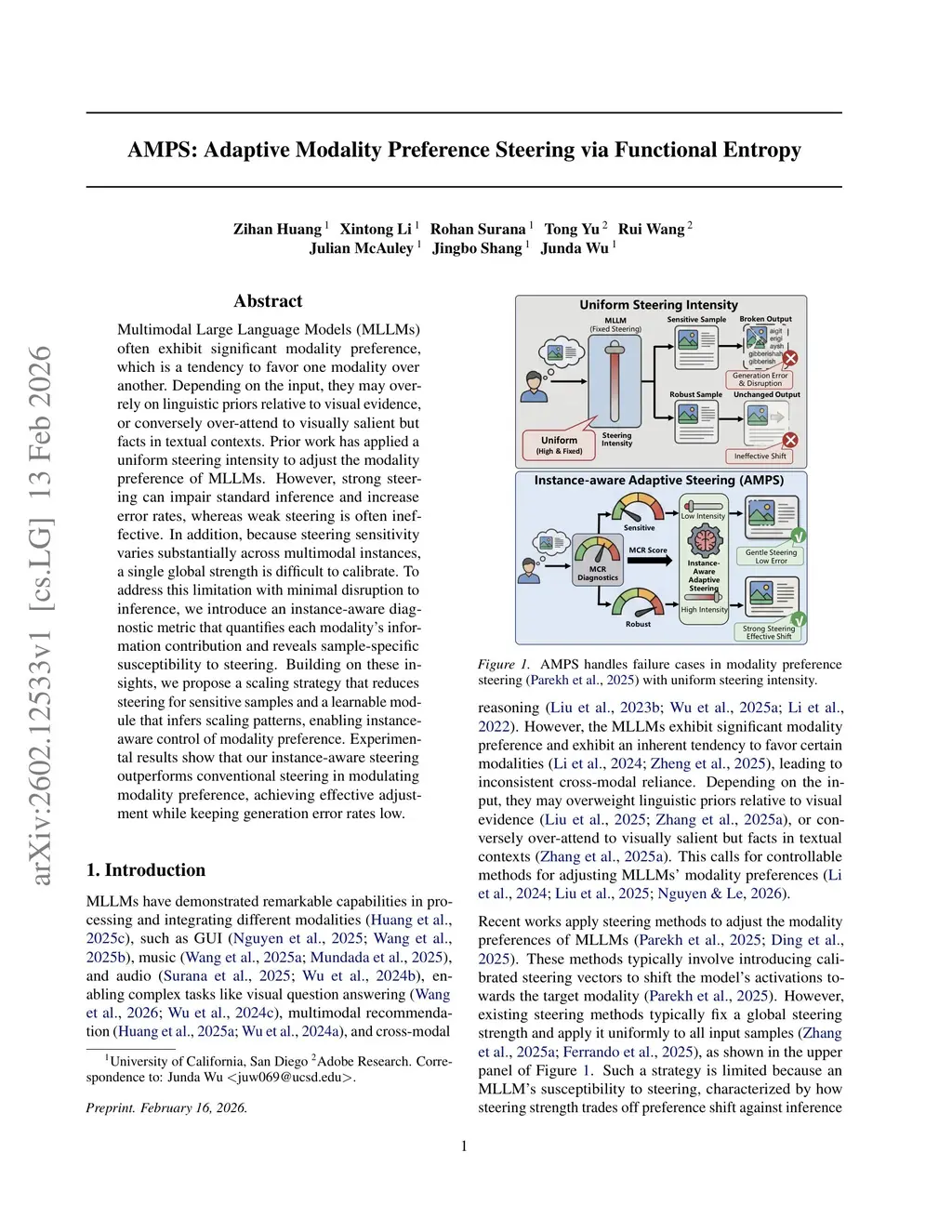 AMPS: Adaptive Modality Preference Steering via Functional Entropy