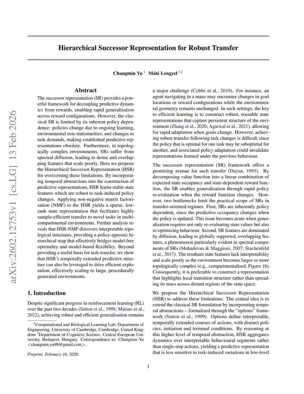 Hierarchical Successor Representation for Robust Transfer