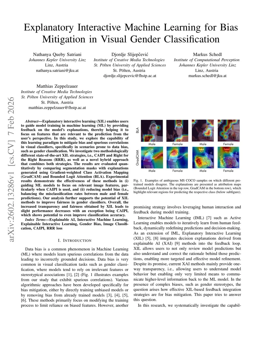 Explanatory interactive learning (XIL) enables users to guide model training in machine learning (ML) by providing feedback on the model's explanations, thereby helping it to focus on features that are relevant to the prediction from the user's perspective. In this study, we explore the capability of this learning paradigm to mitigate bias and spurious correlations in visual classifiers, specifically in scenarios prone to data bias, such as gender classification. We investigate two methodologically different state-of-the-art XIL strategies, i.e., CAIPI and Right for the Right Reasons (RRR), as well as a novel hybrid approach that combines both strategies. The results are evaluated quantitatively by comparing segmentation masks with explanations generated using Gradient-weighted Class Activation Mapping (GradCAM) and Bounded Logit Attention (BLA). Experimental results demonstrate the effectiveness of these methods in (i) guiding ML models to focus on relevant image features, particularly when CAIPI is used, and (ii) reducing model bias (i.e., balancing the misclassification rates between male and female predictions). Our analysis further supports the potential of XIL methods to improve fairness in gender classifiers. Overall, the increased transparency and fairness obtained by XIL leads to slight performance decreases with an exception being CAIPI, which shows potential to even improve classification accuracy.