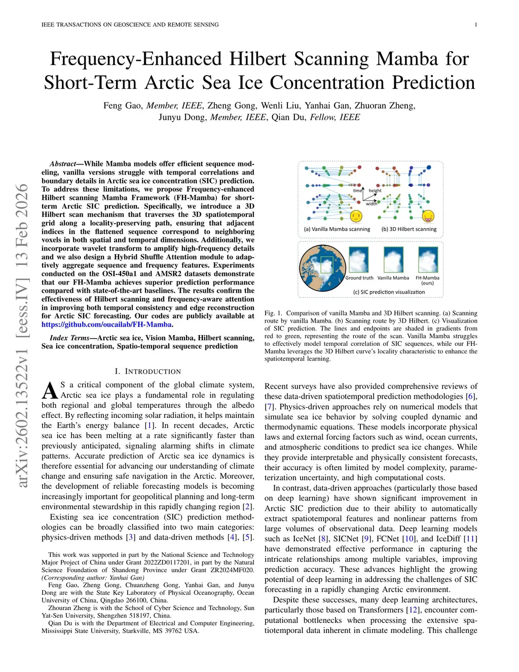 Frequency-Enhanced Hilbert Scanning Mamba for Short-Term Arctic Sea Ice Concentration Prediction