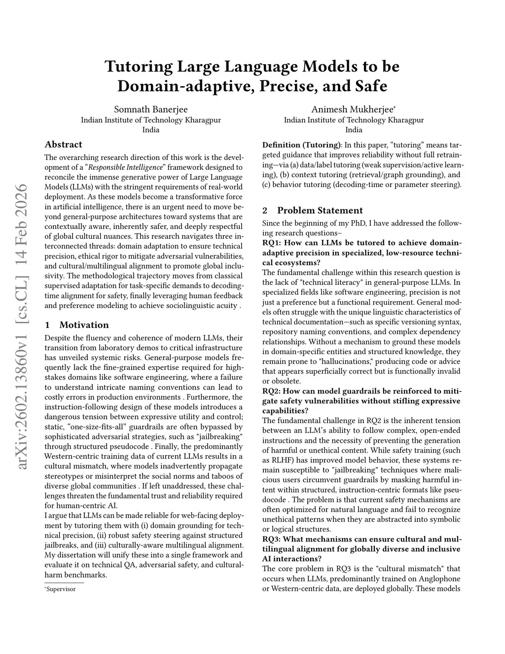The overarching research direction of this work is the development of a ''Responsible Intelligence'' framework designed to reconcile the immense generative power of Large Language Models (LLMs) with the stringent requirements of real-world deployment. As these models become a transformative force in artificial intelligence, there is an urgent need to move beyond general-purpose architectures toward systems that are contextually aware, inherently safer, and deeply respectful of global cultural nuances. This research navigates three interconnected threads: domain adaptation to ensure technical precision, ethical rigor to mitigate adversarial vulnerabilities, and cultural/multilingual alignment to promote global inclusivity. The methodological trajectory moves from classical supervised adaptation for task-specific demands to decoding-time alignment for safety, finally leveraging human feedback and preference modeling to achieve sociolinguistic acuity.