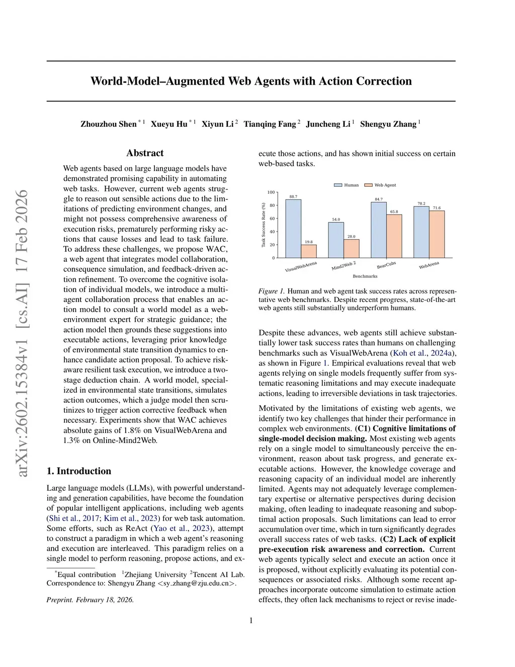 Web agents based on large language models have demonstrated promising capability in automating web tasks. However, current web agents struggle to reason out sensible actions due to the limitations of predicting environment changes, and might not possess comprehensive awareness of execution risks, prematurely performing risky actions that cause losses and lead to task failure. To address these challenges, we propose WAC, a web agent that integrates model collaboration, consequence simulation, and feedback-driven action refinement. To overcome the cognitive isolation of individual models, we introduce a multi-agent collaboration process that enables an action model to consult a world model as a web-environment expert for strategic guidance; the action model then grounds these suggestions into executable actions, leveraging prior knowledge of environmental state transition dynamics to enhance candidate action proposal. To achieve risk-aware resilient task execution, we introduce a two-stage deduction chain. A world model, specialized in environmental state transitions, simulates action outcomes, which a judge model then scrutinizes to trigger action corrective feedback when necessary. Experiments show that WAC achieves absolute gains of 1.8% on VisualWebArena and 1.3% on Online-Mind2Web.