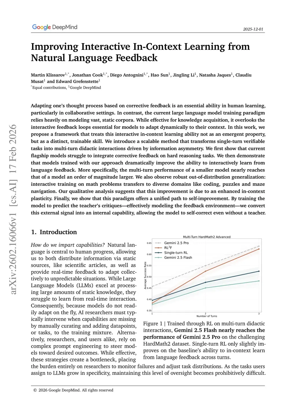 Adapting one's thought process based on corrective feedback is an essential ability in human learning, particularly in collaborative settings. In contrast, the current large language model training paradigm relies heavily on modeling vast, static corpora. While effective for knowledge acquisition, it overlooks the interactive feedback loops essential for models to adapt dynamically to their context. In this work, we propose a framework that treats this interactive in-context learning ability not as an emergent property, but as a distinct, trainable skill. We introduce a scalable method that transforms single-turn verifiable tasks into multi-turn didactic interactions driven by information asymmetry. We first show that current flagship models struggle to integrate corrective feedback on hard reasoning tasks. We then demonstrate that models trained with our approach dramatically improve the ability to interactively learn from language feedback. More specifically, the multi-turn performance of a smaller model nearly reaches that of a model an order of magnitude larger. We also observe robust out-of-distribution generalization: interactive training on math problems transfers to diverse domains like coding, puzzles and maze navigation. Our qualitative analysis suggests that this improvement is due to an enhanced in-context plasticity. Finally, we show that this paradigm offers a unified path to self-improvement. By training the model to predict the teacher's critiques, effectively modeling the feedback environment, we convert this external signal into an internal capability, allowing the model to self-correct even without a teacher.