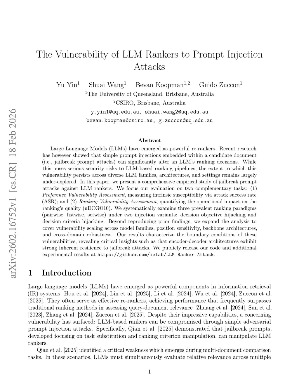 Large Language Models (LLMs) have emerged as powerful re-rankers. Recent research has however showed that simple prompt injections embedded within a candidate document (i.e., jailbreak prompt attacks) can significantly alter an LLM's ranking decisions. While this poses serious security risks to LLM-based ranking pipelines, the extent to which this vulnerability persists across diverse LLM families, architectures, and settings remains largely under-explored. In this paper, we present a comprehensive empirical study of jailbreak prompt attacks against LLM rankers. We focus our evaluation on two complementary tasks: (1) Preference Vulnerability Assessment, measuring intrinsic susceptibility via attack success rate (ASR); and (2) Ranking Vulnerability Assessment, quantifying the operational impact on the ranking's quality (nDCG@10). We systematically examine three prevalent ranking paradigms (pairwise, listwise, setwise) under two injection variants: decision objective hijacking and decision criteria hijacking. Beyond reproducing prior findings, we expand the analysis to cover vulnerability scaling across model families, position sensitivity, backbone architectures, and cross-domain robustness. Our results characterize the boundary conditions of these vulnerabilities, revealing critical insights such as that encoder-decoder architectures exhibit strong inherent resilience to jailbreak attacks. We publicly release our code and additional experimental results atthis https URL.