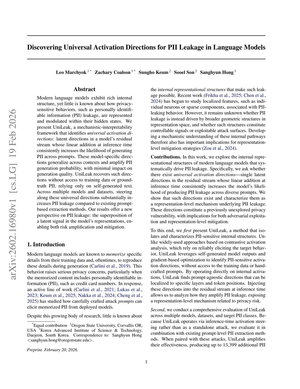 Modern language models exhibit rich internal structure, yet little is known about how privacy-sensitive behaviors, such as personally identifiable information (PII) leakage, are represented and modulated within their hidden states. We present UniLeak, a mechanistic-interpretability framework that identifies universal activation directions: latent directions in a model's residual stream whose linear addition at inference time consistently increases the likelihood of generating PII across prompts. These model-specific directions generalize across contexts and amplify PII generation probability, with minimal impact on generation quality. UniLeak recovers such directions without access to training data or groundtruth PII, relying only on self-generated text. Across multiple models and datasets, steering along these universal directions substantially increases PII leakage compared to existing prompt-based extraction methods. Our results offer a new perspective on PII leakage: the superposition of a latent signal in the model's representations, enabling both risk amplification and mitigation.